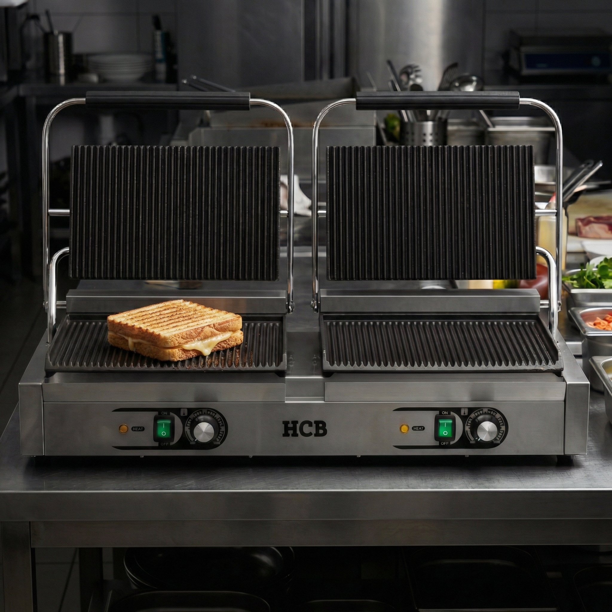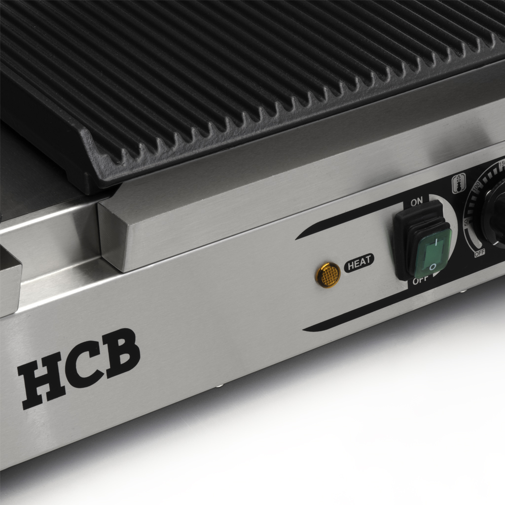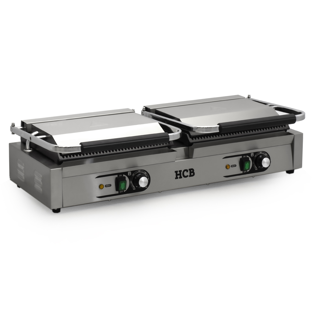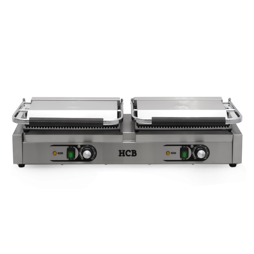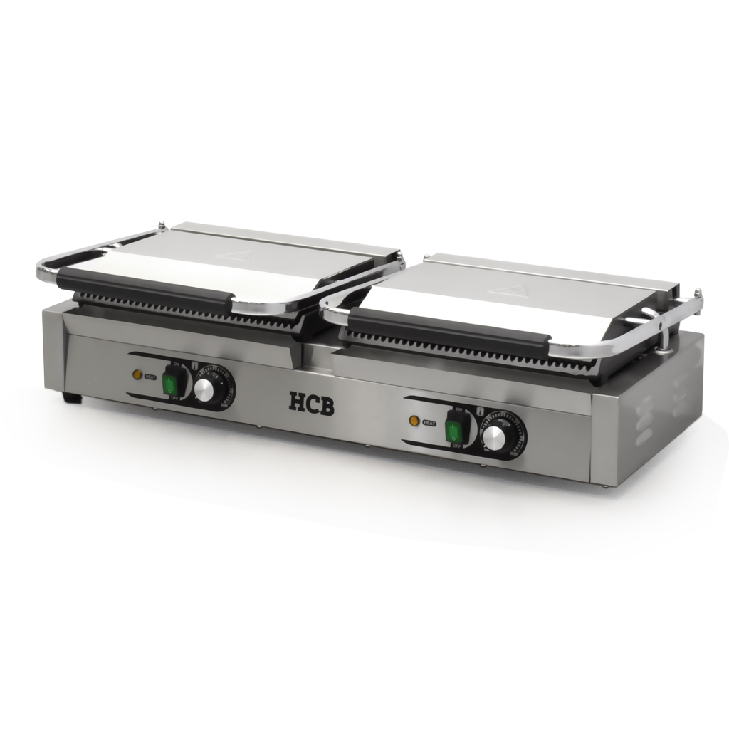HCB Paninigrill – geribbeld – dubbel – 2 x 230V – RVS
