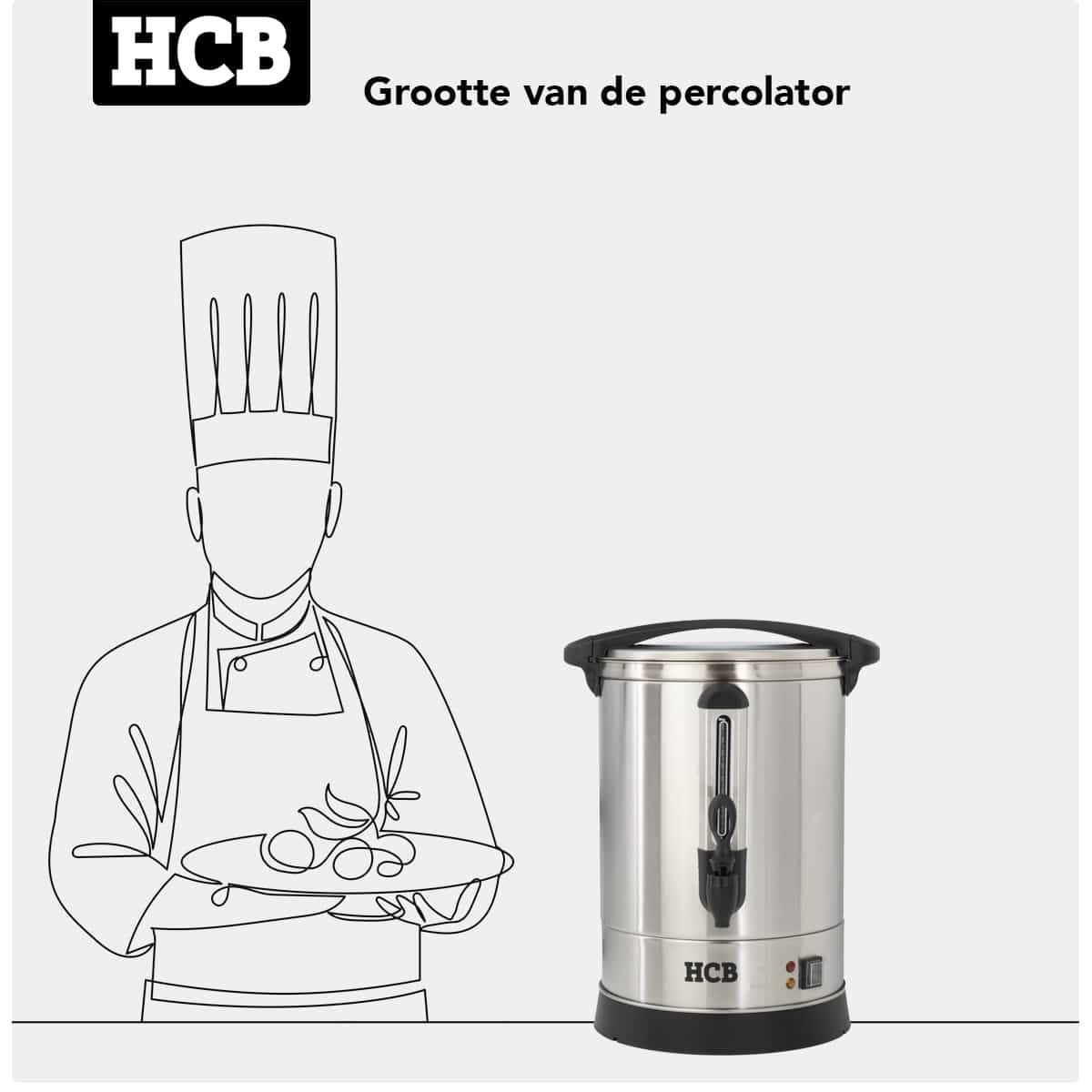 Met zijn grote capaciteit en efficiënte verwarmingselementen zorgt de HCB percolator ervoor dat je telkens weer kunt genieten van heerlijke, hete koffie – perfect voor momenten waarop je grotere hoeveelheden koffie wilt serveren zonder in te leveren op smaak.