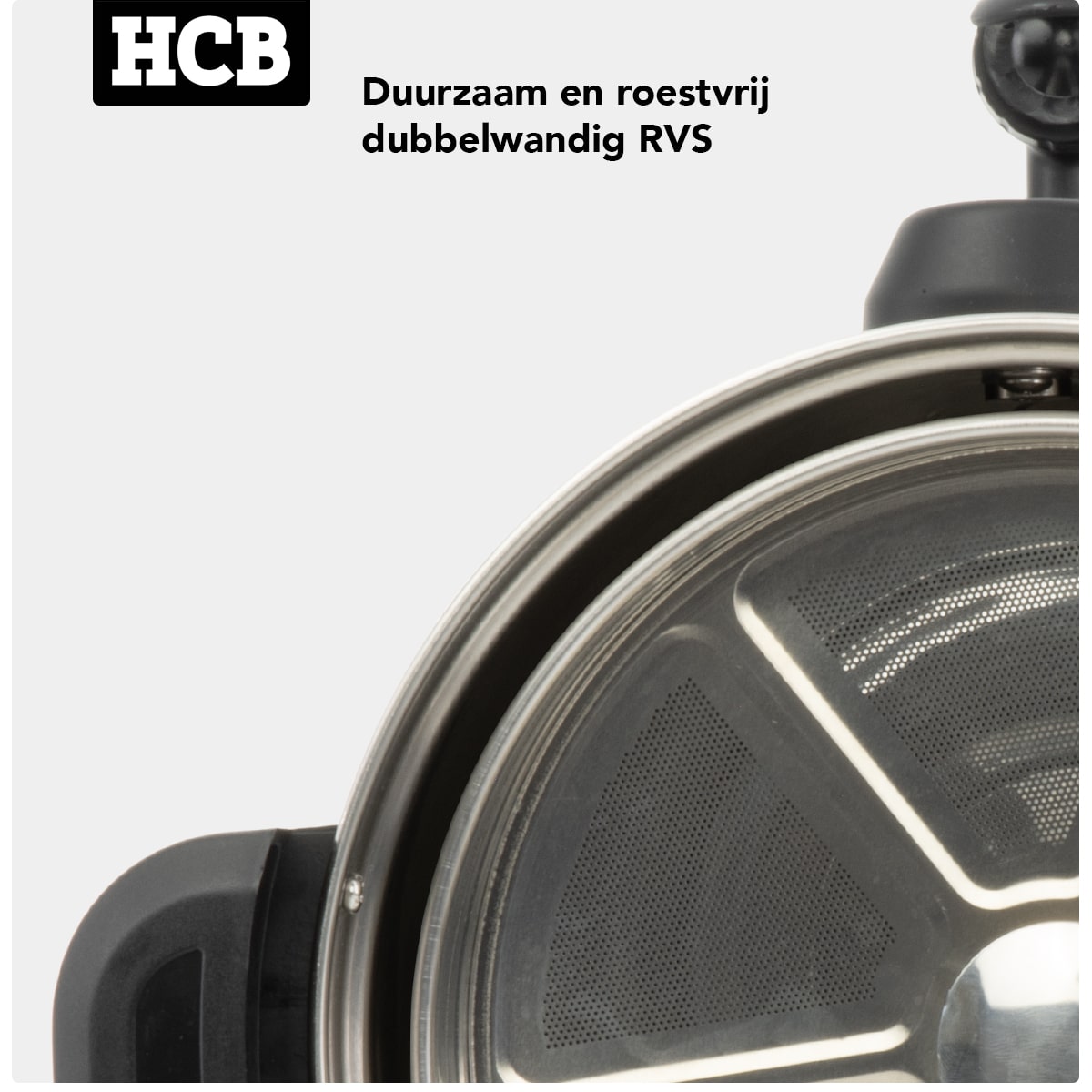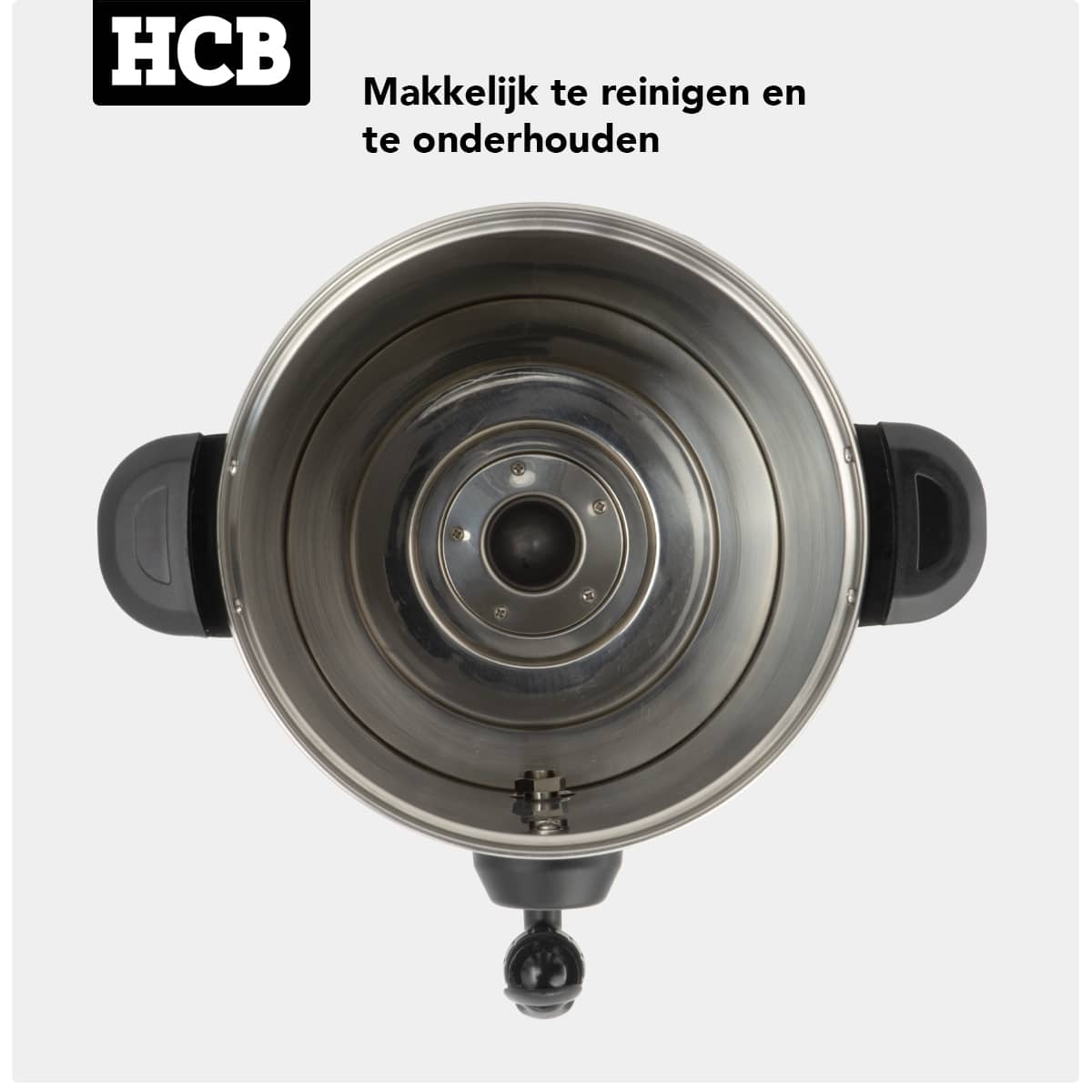 Gebruiksvriendelijk en Veilig De HCB percolator is ontworpen met het oog op gemak. De deksel is eenvoudig te openen en te sluiten, zodat je zonder moeite de perculator kunt vullen. Bovendien beschikt het apparaat over een beveiliging tegen oververhitting, zodat je veilig kunt werken, zelfs bij intensief gebruik.