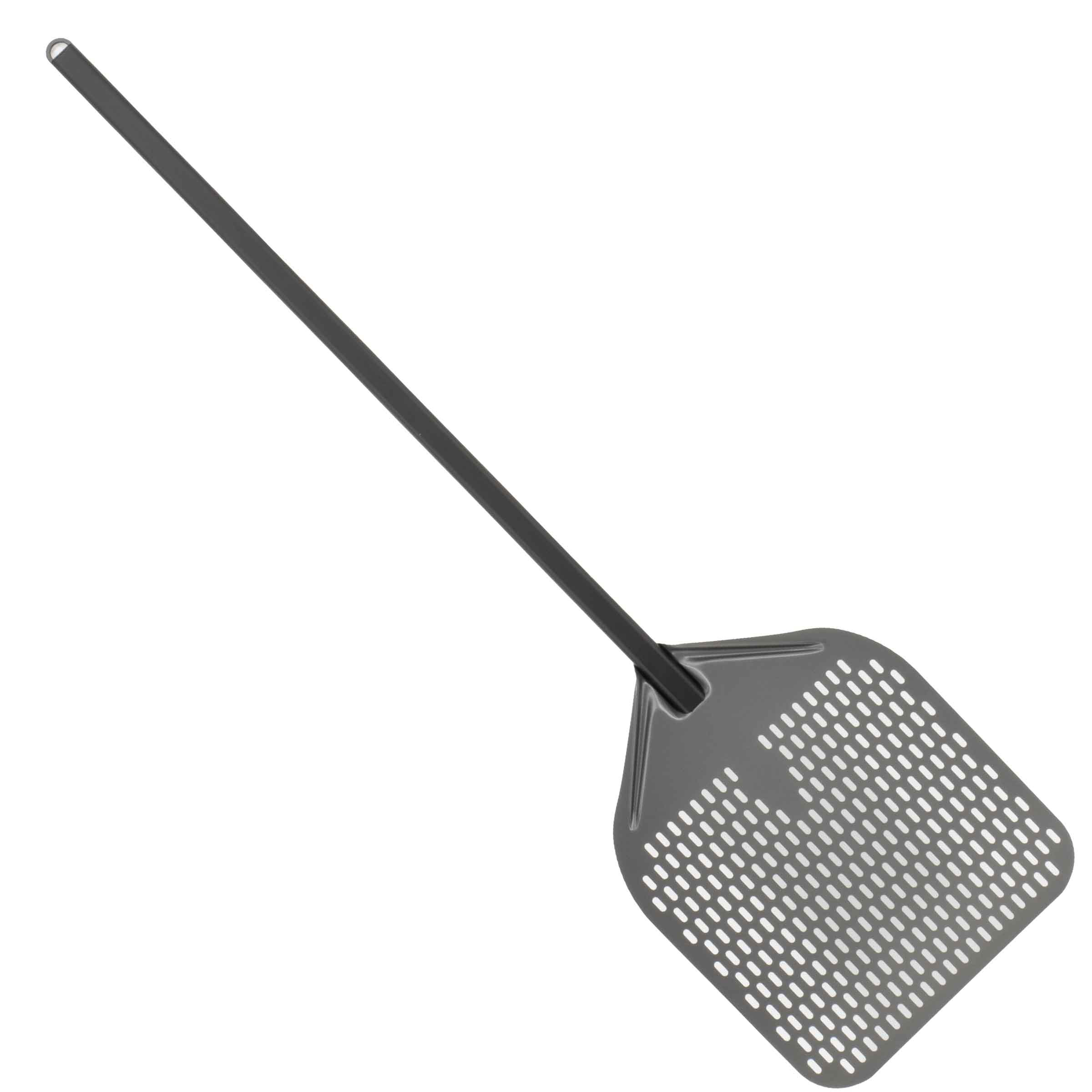 Het geperforeerde blad van onze pizzaschep zorgt voor een gelijkmatige warmteverdeling en voorkomt dat de bodem van de pizza aan de schep blijft plakken. Hierdoor wordt het bakproces geoptimaliseerd en kunt u keer op keer perfect gebakken pizza’s serveren aan uw klanten.