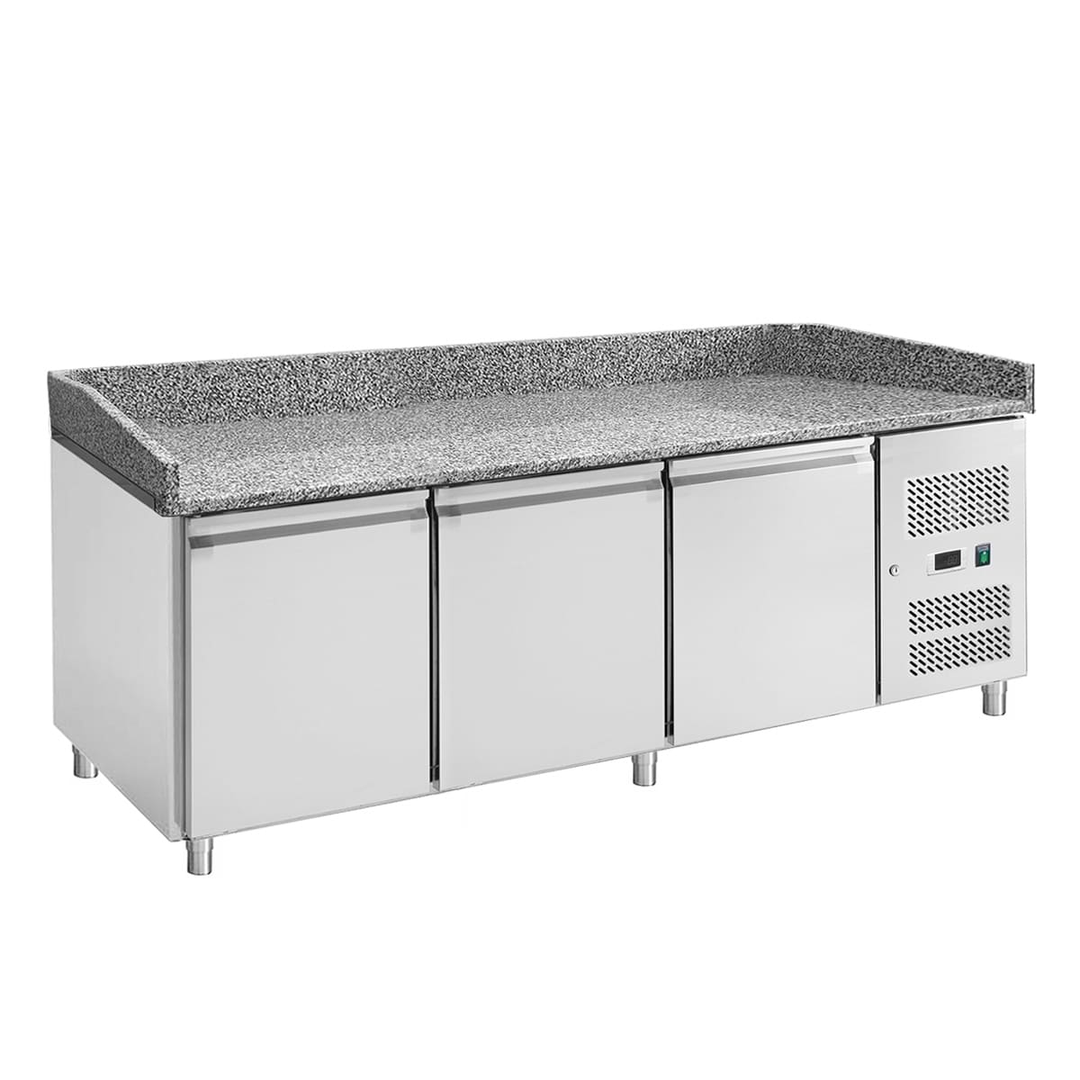 Het granieten blad zorgt voor een stabiele en duurzame basis voor het bereiden van de perfecte pizza. Het is niet alleen gemakkelijk schoon te maken, maar ook bestand tegen hitte en vochtigheid, waardoor het perfect is voor gebruik in een drukke keuken.
