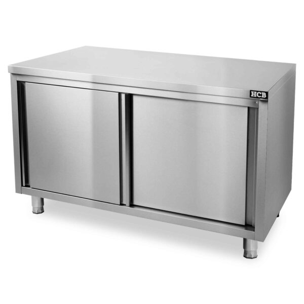 Om veilig, optimaal en efficiënt te kunnen werken in uw professionele keuken zijn RVS Werkkasten van groot belang. Voorzien van een extra sterk RVS blad, stevige poten en strak afgewerkte hoeken is deze werkkast van het merk HCB daarom de perfecte keuze! Deze werkkast heeft met de netjes af te sluiten schuifdeuren en een schap voor overzichtelijke opbergruimte. Verder is de kast door zijn stevigheid en draagkracht zeer geschikt om in de professionele keuken te gebruiken.
