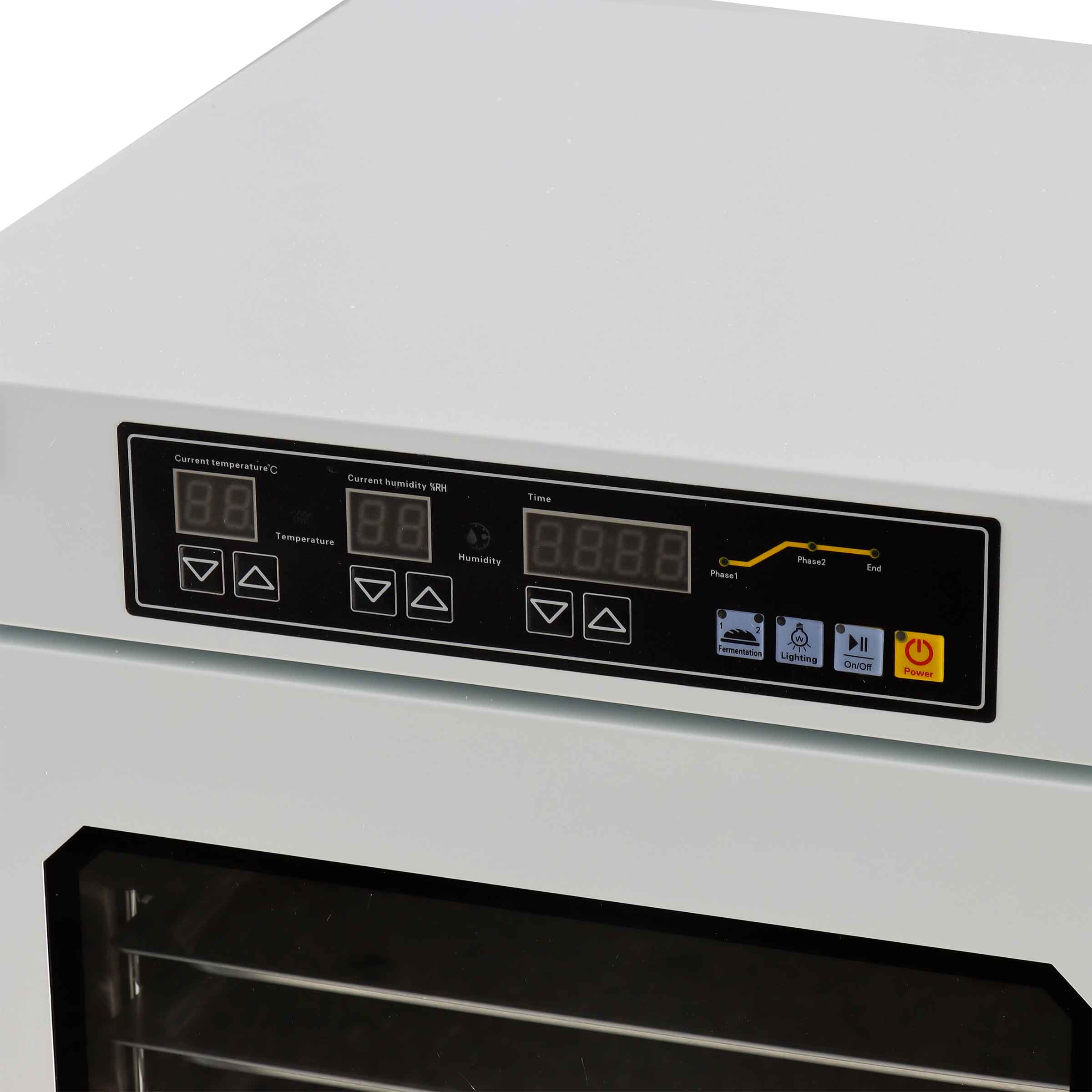 Deze rijskast is geschikt voor het rijzen van verschillende soorten deeg, waaronder brood, croissants, brioche en nog veel meer. De temperatuur en vochtigheidsgraad kunnen eenvoudig worden aangepast aan de vereisten van het specifieke deeg dat u aan het rijzen bent.
