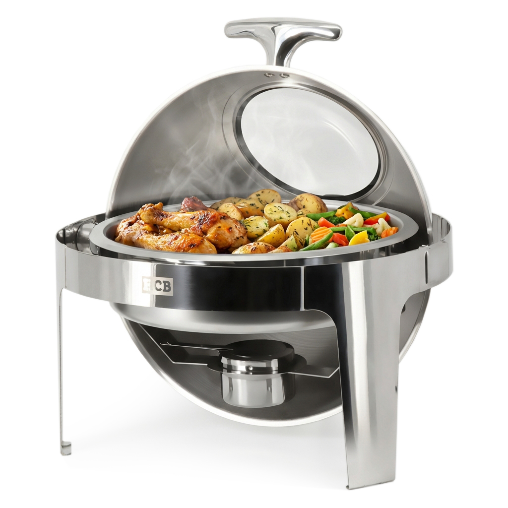 HCB Ronde chafing dish – rolltop – 6 liter – kijkglas – RVS