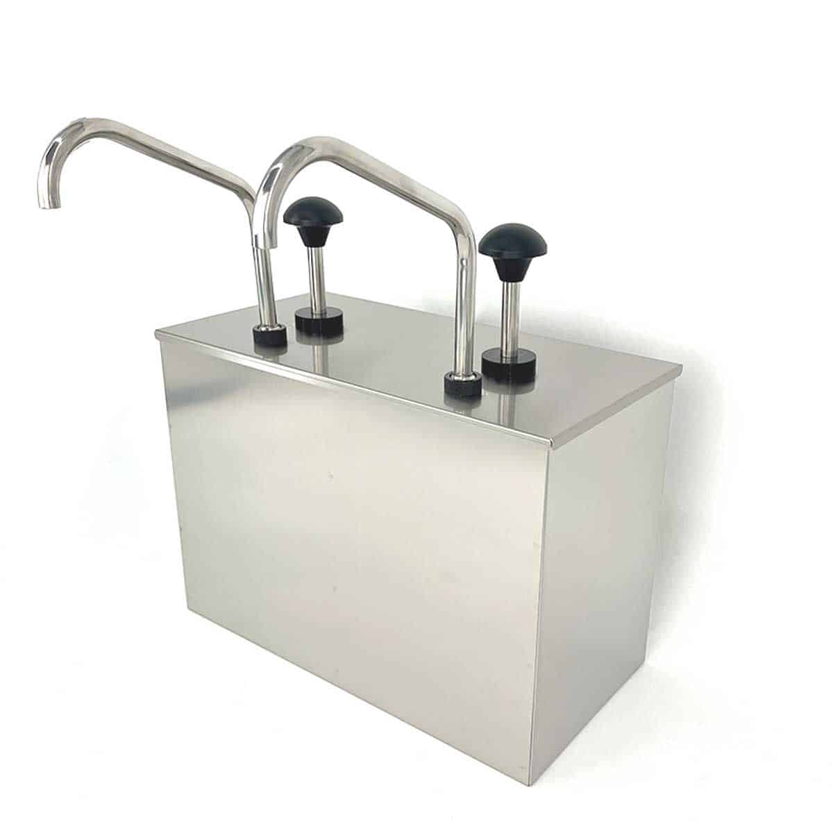 De pomp heeft een grote capaciteit en kan tot 2 x 4 liter saus bevatten, waardoor het ideaal is voor drukke keukens. Het handige ontwerp maakt het gemakkelijk om de juiste hoeveelheid saus te doseren en te serveren. Met de eenvoudig te bedienen hendel kan de gewenste hoeveelheid saus worden opgepompt.