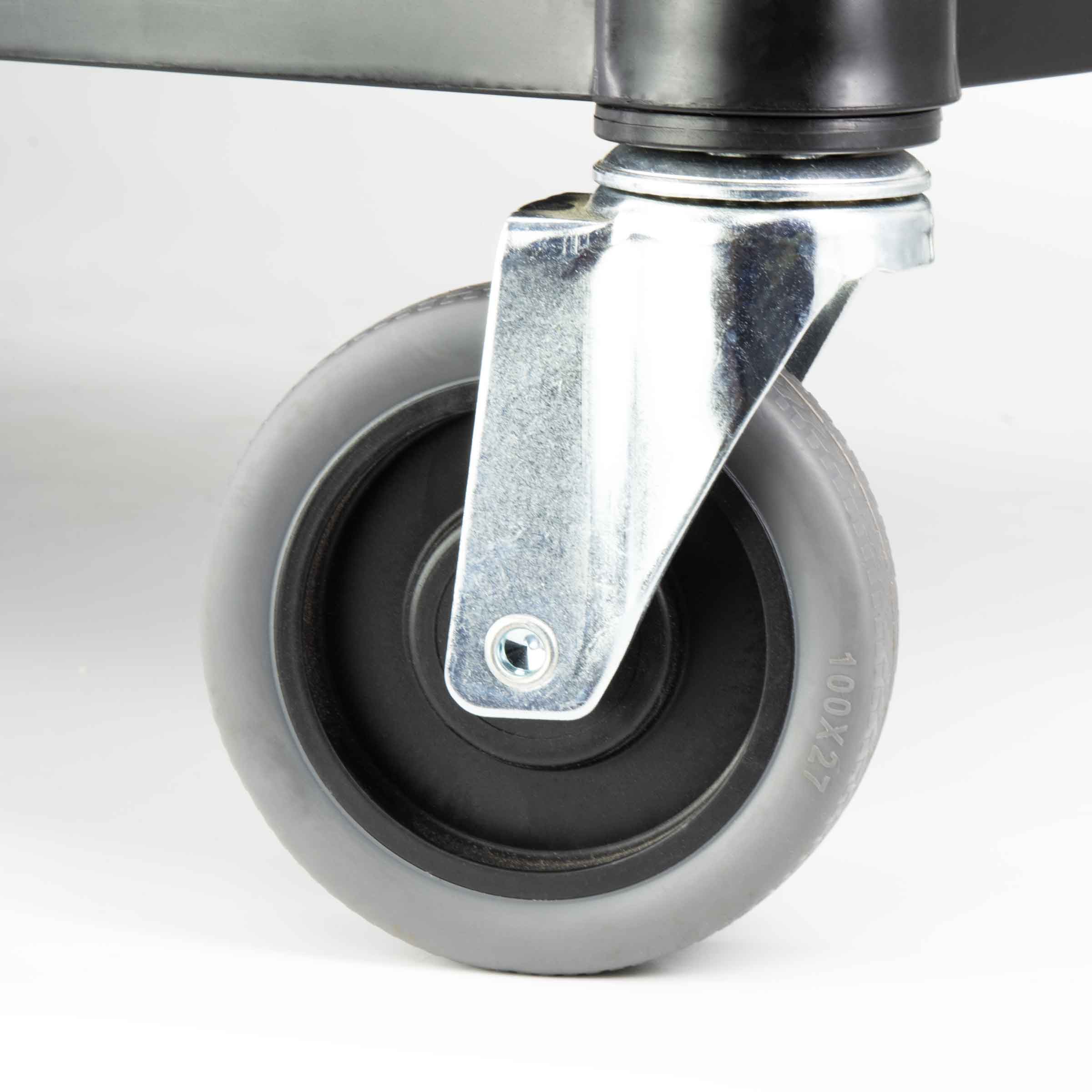 De serveerwagen is vervaardigd van hoogwaardig kunststof dat duurzaam en gemakkelijk te reinigen is. Het materiaal is bestand tegen vlekken, deuken en krassen, waardoor de wagen er zelfs na intensief gebruik nog professioneel uitziet. Bovendien is het kunststof licht van gewicht, waardoor de wagen gemakkelijk te manoeuvreren is, zelfs wanneer deze volgeladen is.