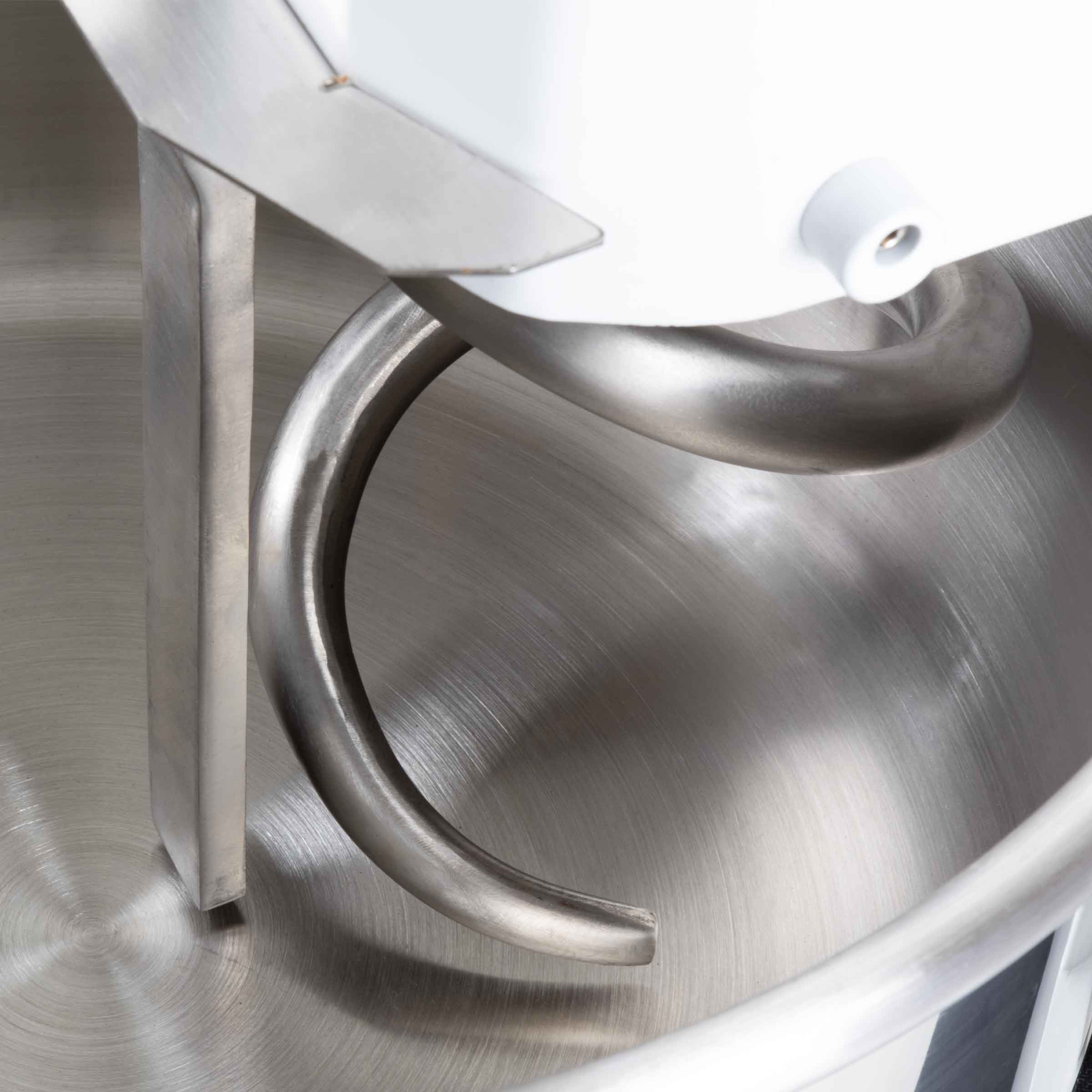 Solide en Onderhoudsvriendelijk: De deegkneder heeft een stevige constructie en een hoog eigen gewicht van 140 kg, waardoor hij stabiel staat zonder dat een permanente installatie nodig is. Dit maakt de kneder niet alleen betrouwbaar, maar ook gemakkelijk te verplaatsen indien nodig. Het onderhoudsarme ontwerp en de verwijderbare kuip zorgen ervoor dat de machine snel en eenvoudig gereinigd kan worden.
