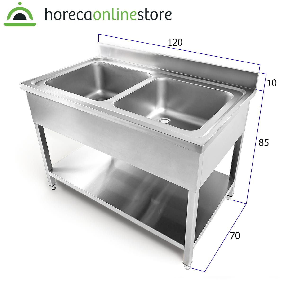 HCB Spoeltafel – dubbele spoelbakken – 120 cm – RVS