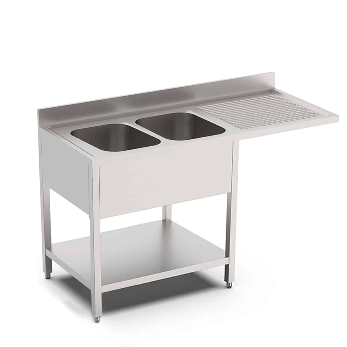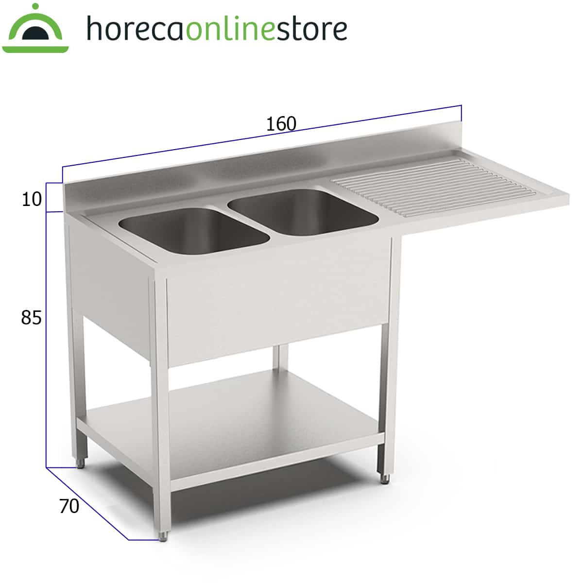 HCB Spoeltafel – dubbele spoelbakken links – 160 cm – RVS
