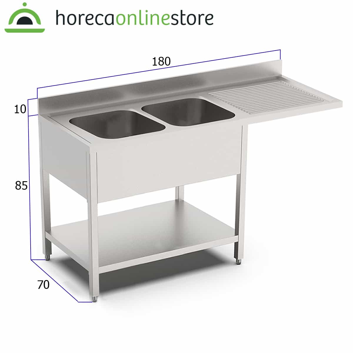 HCB Spoeltafel – dubbele spoelbakken links – 180 cm – RVS