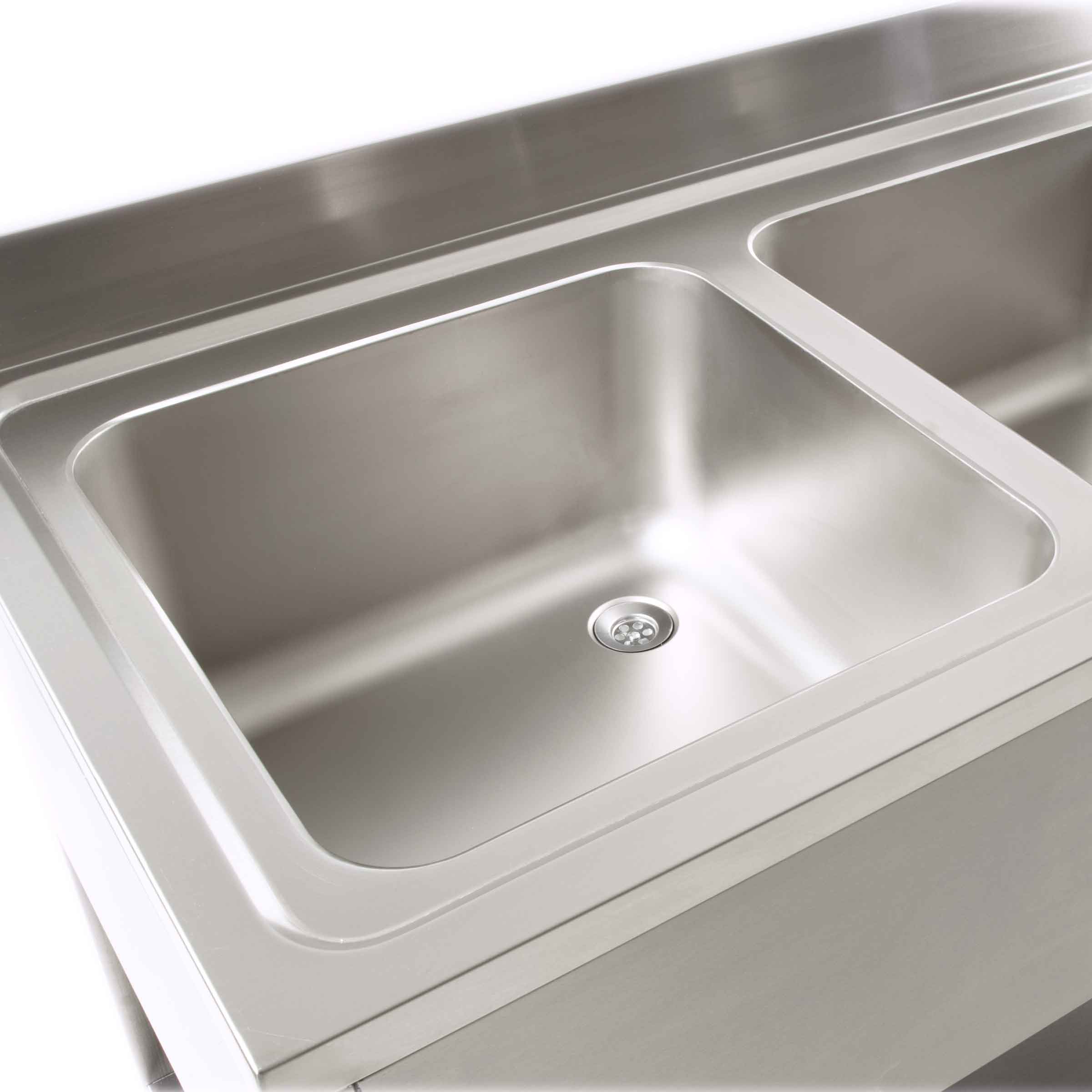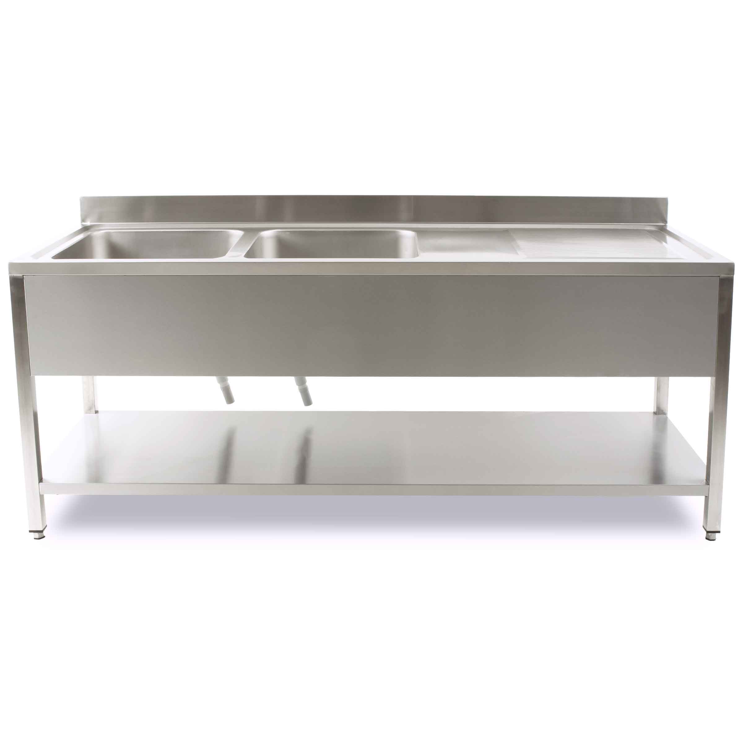 HCB Spoeltafel – dubbele spoelbakken links – 200 cm – RVS