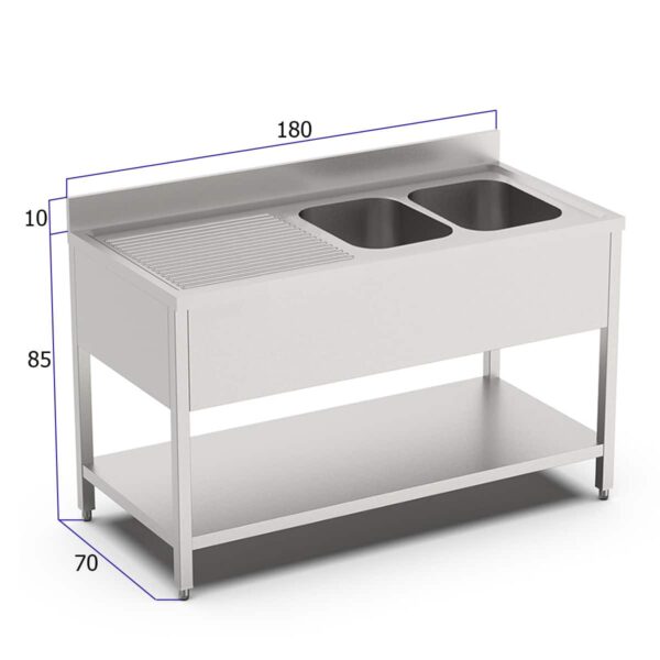 HCB Spoeltafel – dubbele spoelbakken rechts – 180 cm – RVS
