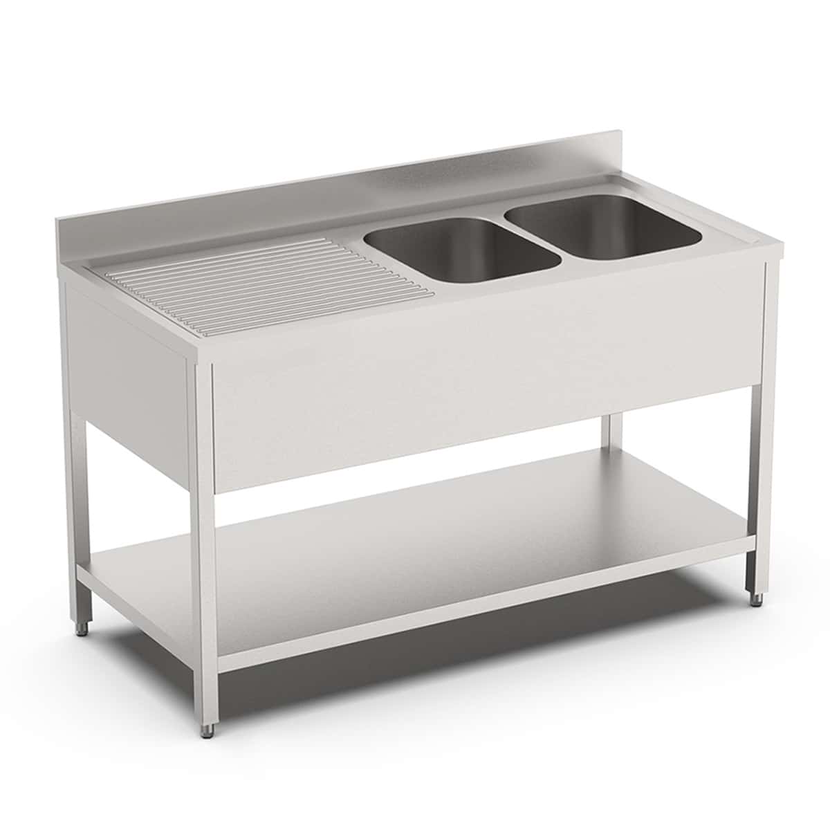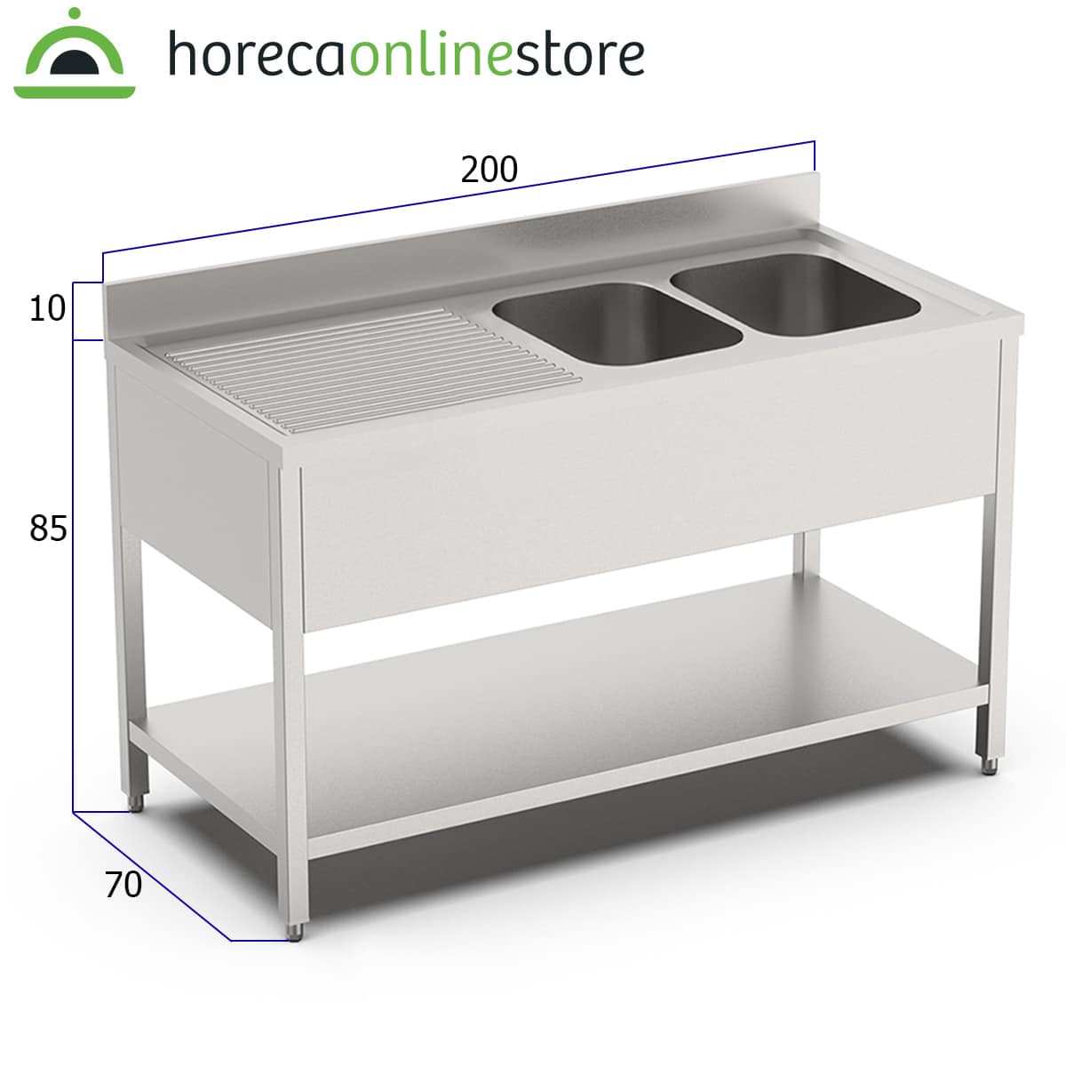 HCB Spoeltafel – dubbele spoelbakken rechts – 200 cm – RVS