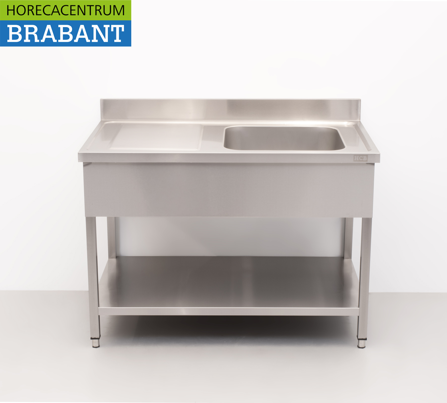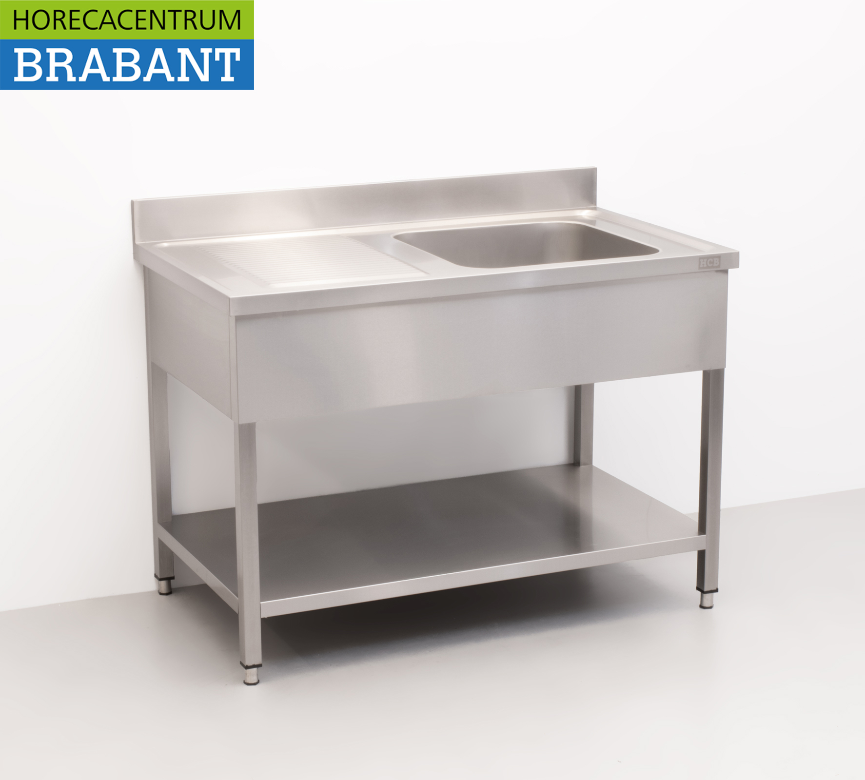 HCB Spoeltafel – enkele spoelbak – 120 x 70 cm – RVS