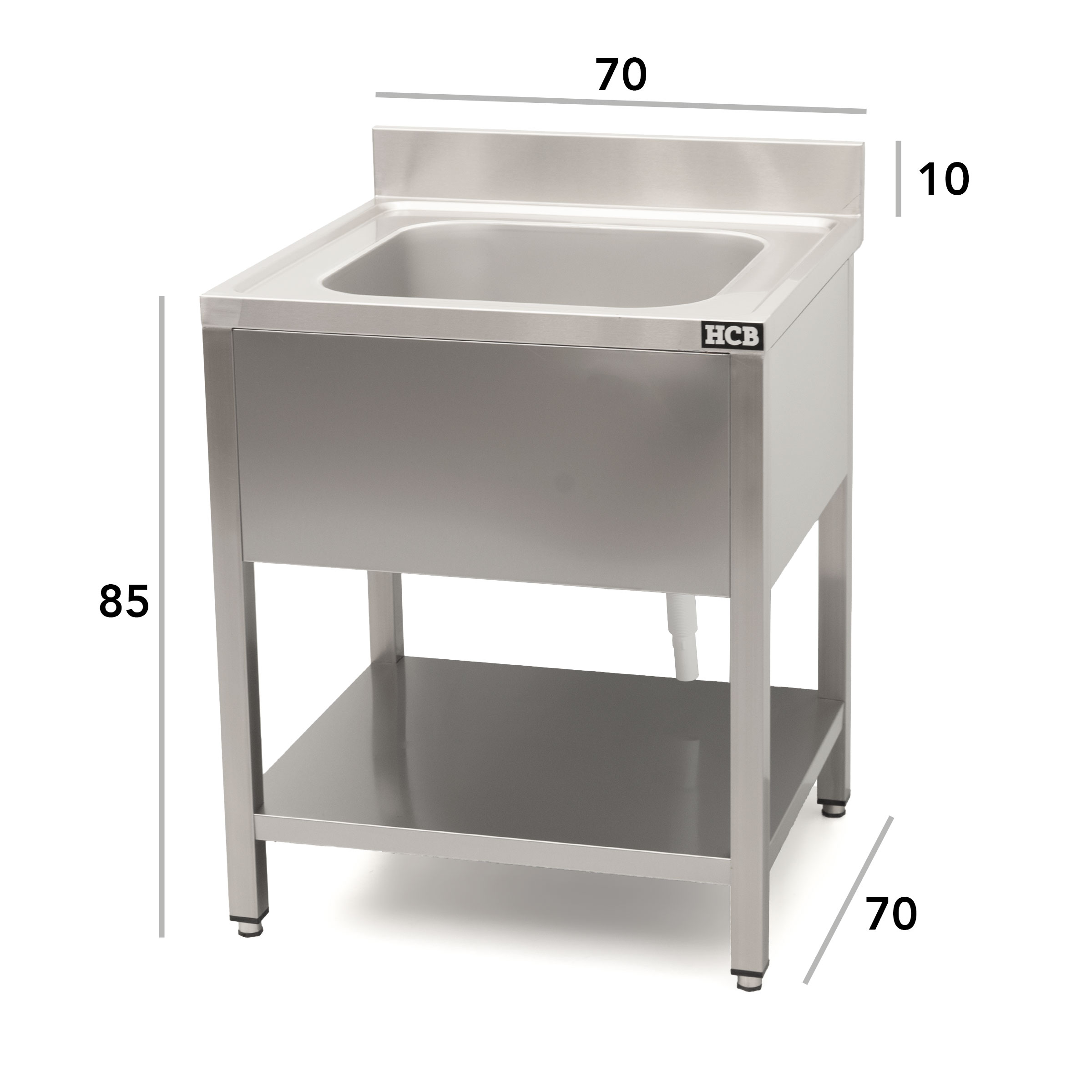 HCB Spoeltafel – enkele spoelbak – 70 cm – RVS