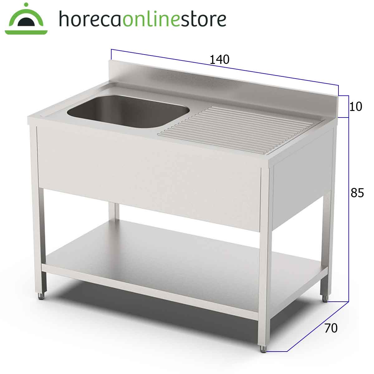 HCB Spoeltafel – enkele spoelbak links – 140 cm – RVS