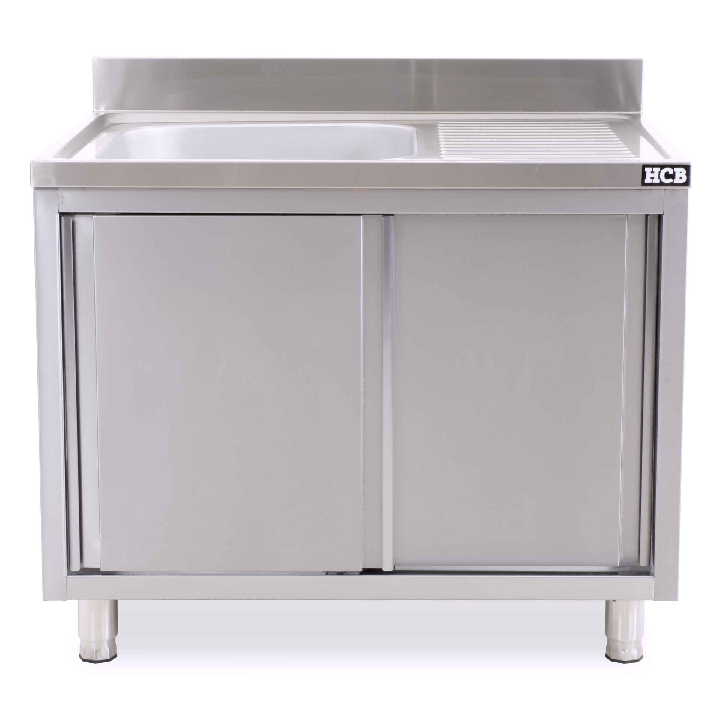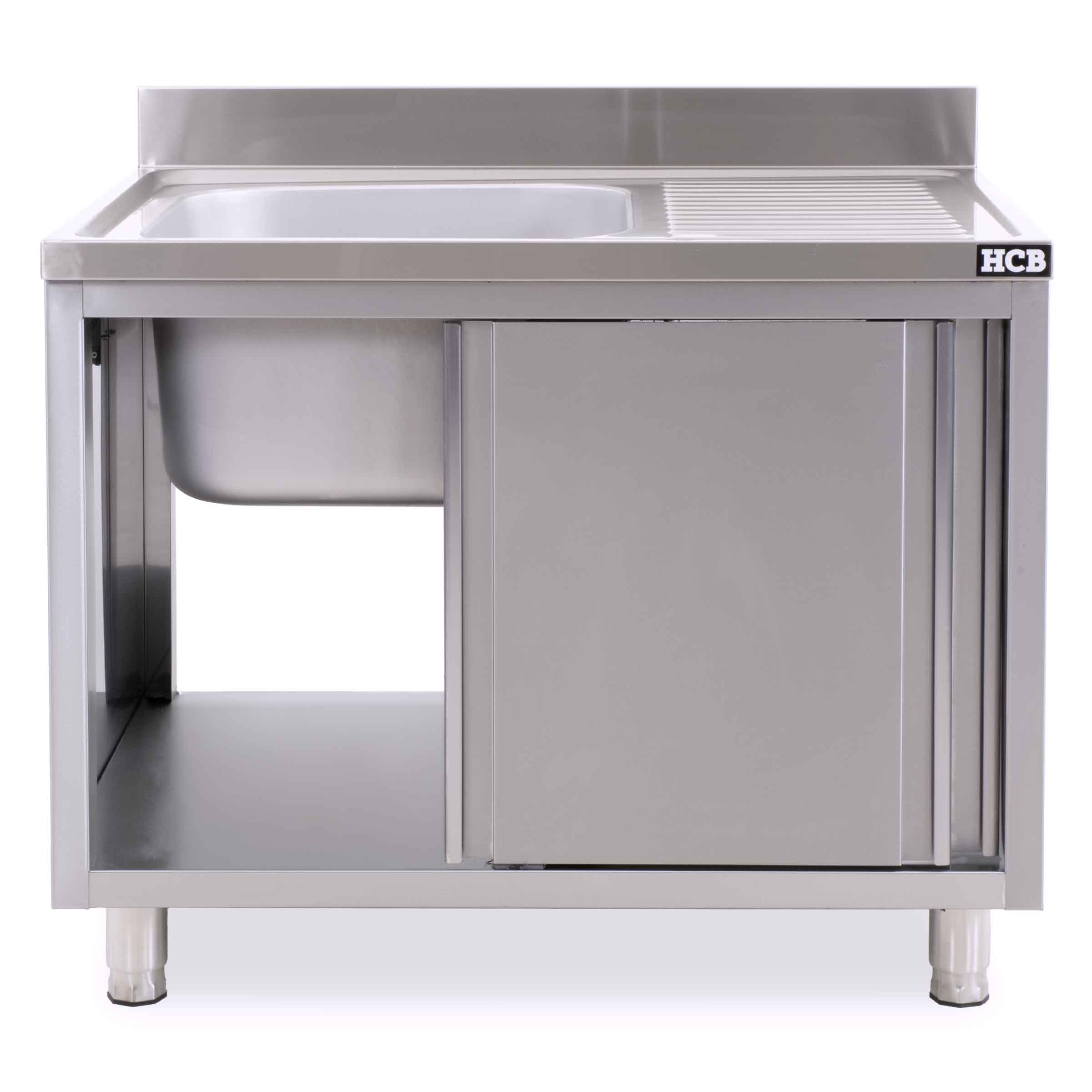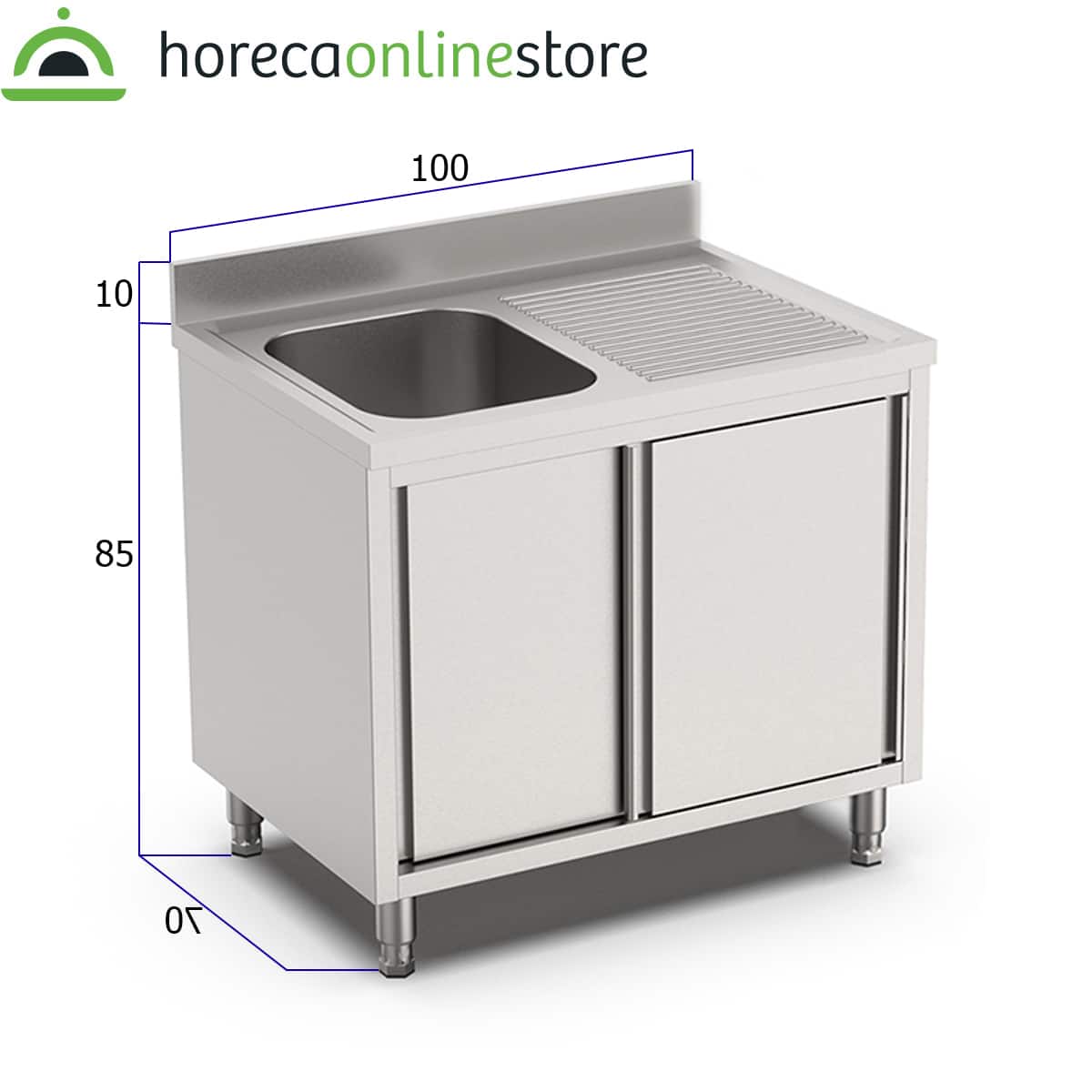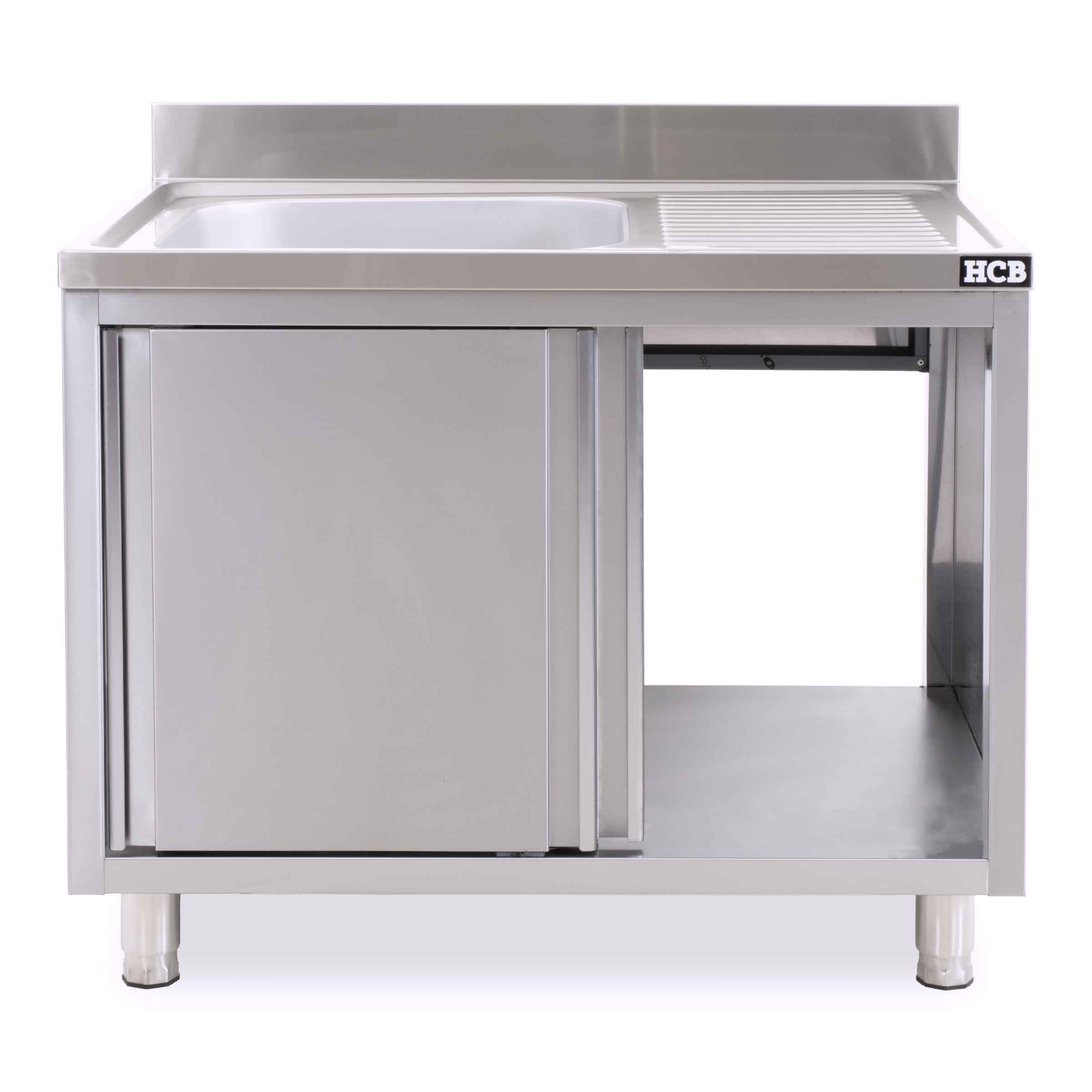 HCB Spoeltafel – enkele spoelbak links – schuifdeuren – 100 cm – RVS