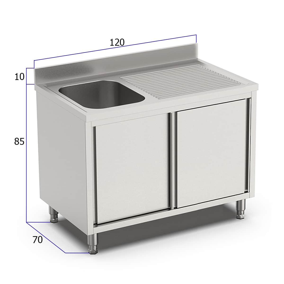 HCB Spoeltafel – enkele spoelbak links – schuifdeuren – 120 cm – RVS