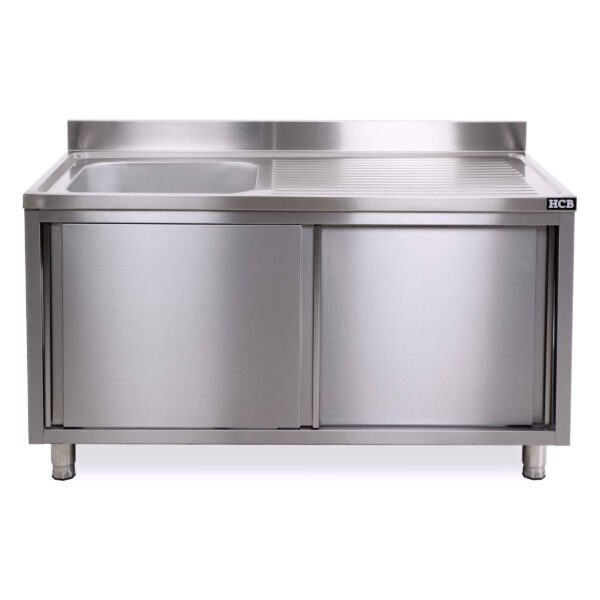 HCB Spoeltafel – enkele spoelbak links – schuifdeuren – 140 cm – RVS