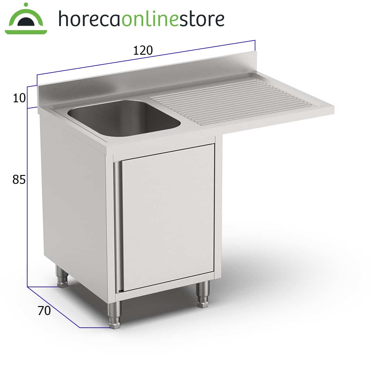HCB Spoeltafel – spoelbak links – klapdeur – 120 cm – RVS