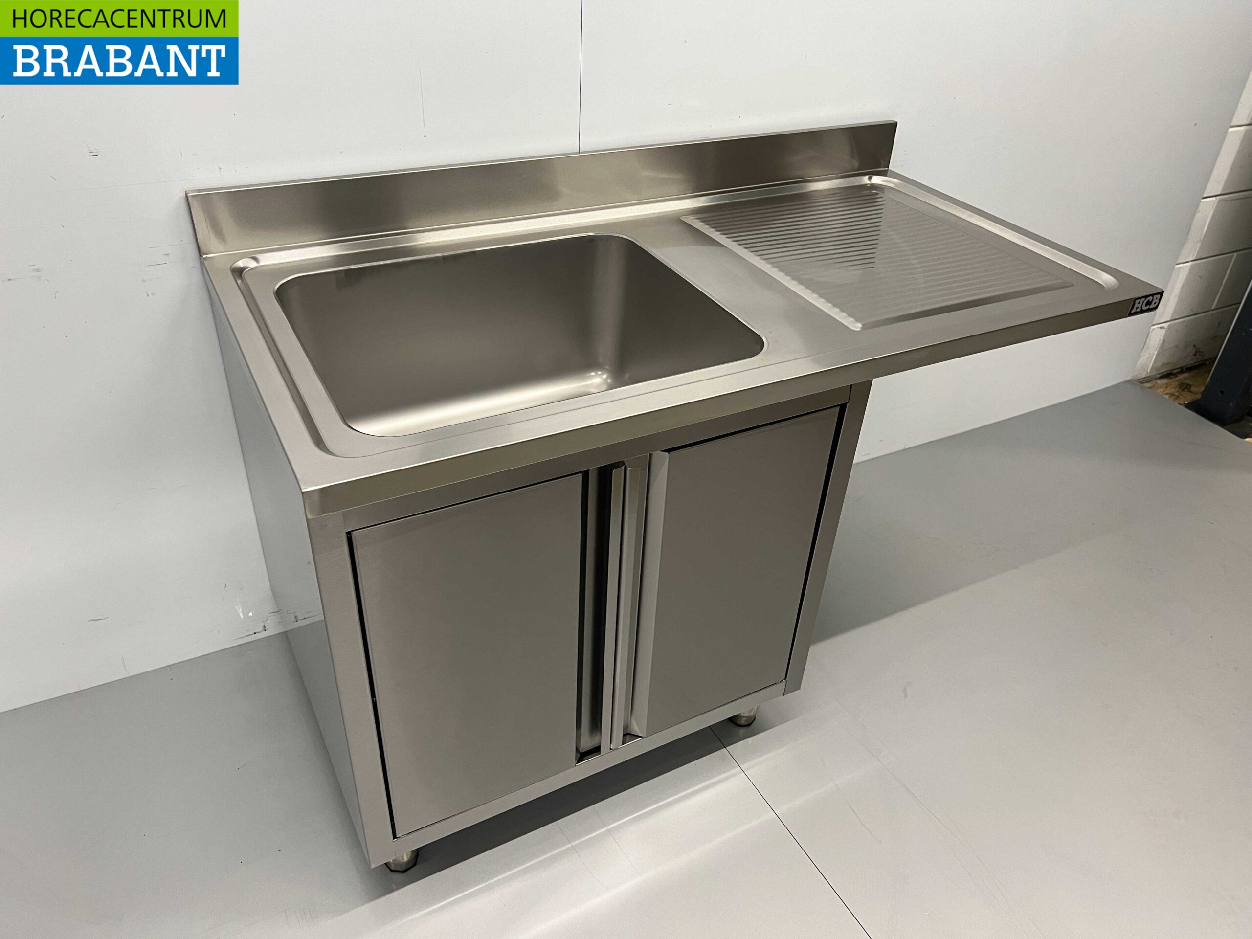 HCB Spoeltafel – spoelbak links – klapdeur – 140 cm – RVS