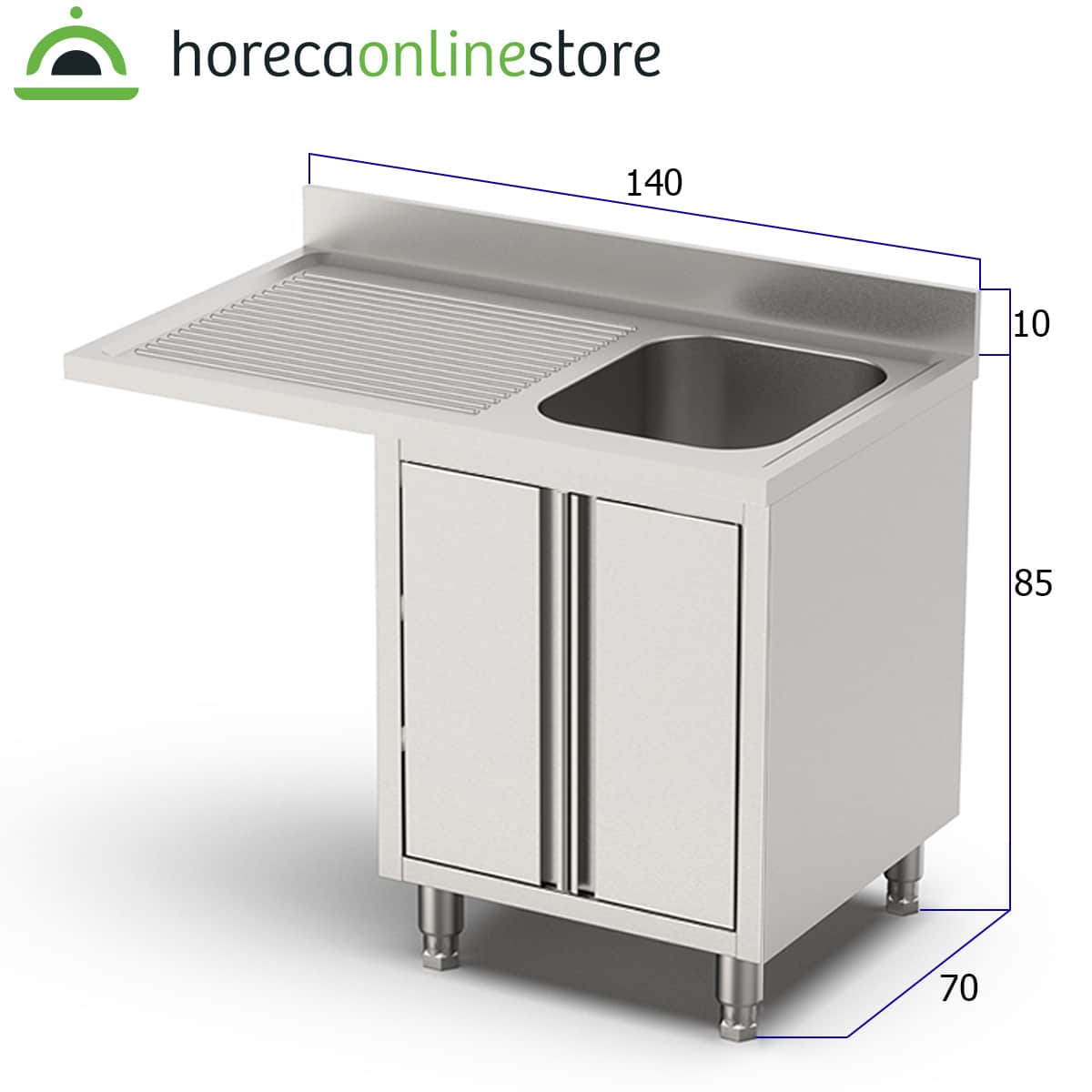 HCB Spoeltafel – spoelbak rechts – klapdeur – 140 cm – RVS