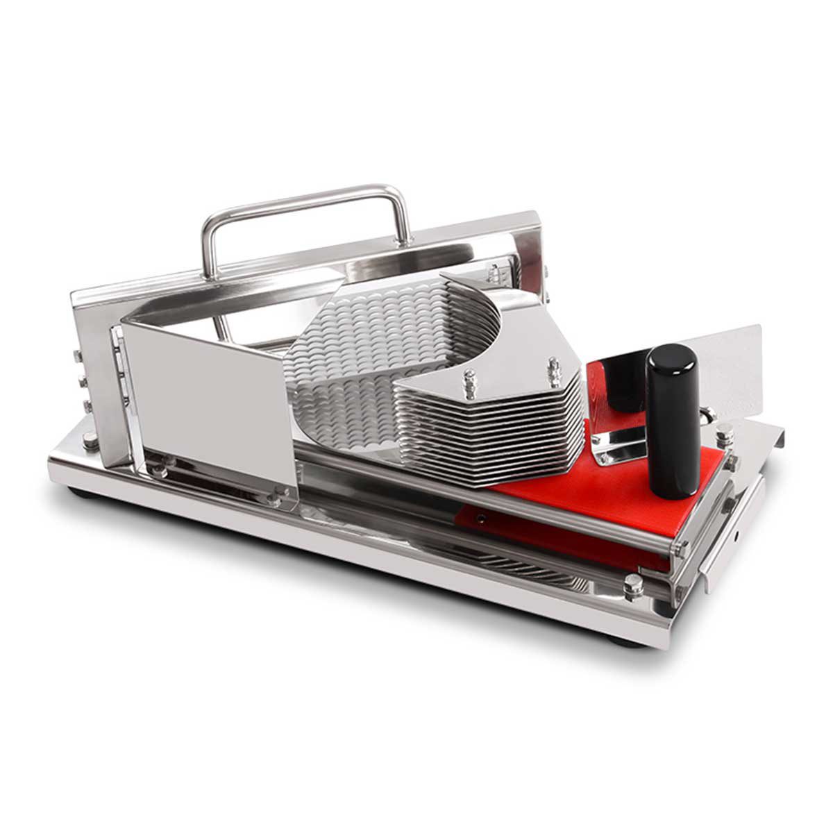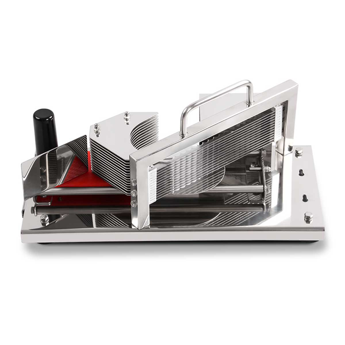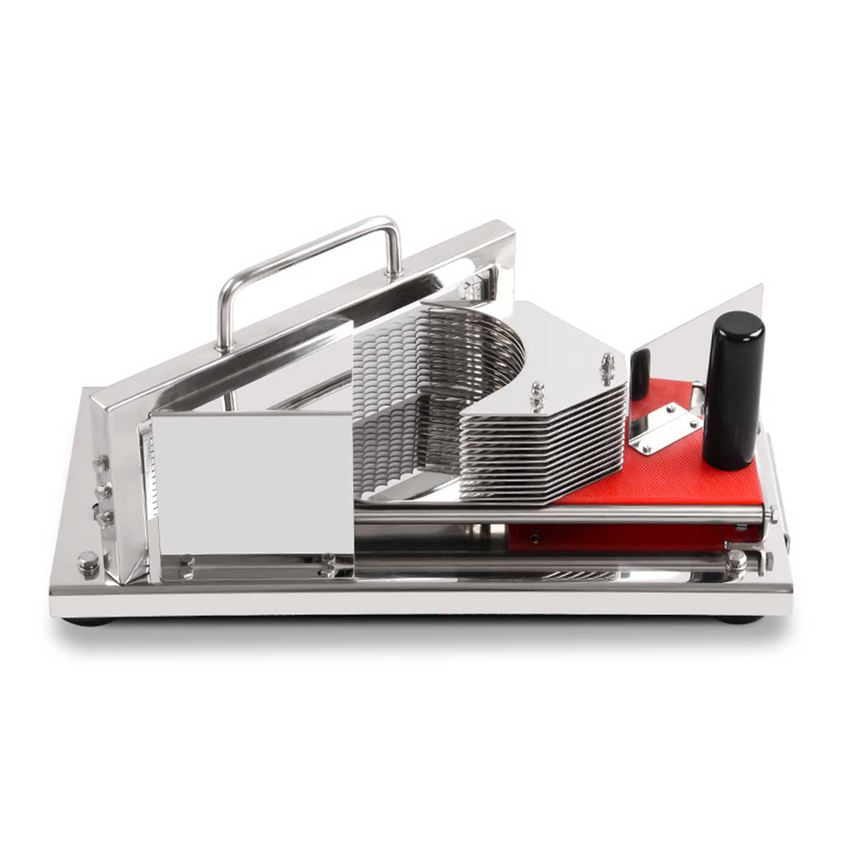 Deze tomatensnijder is door zijn scherpe kartelmessen niet alleen geschikt voor tomaten maar ook voor andere soorten fruit, door deze super scherpe messen is het mogelijk om mooie gladde plakken te snijden. Het ontwerp van deze tomatensnijder is zeek gebruiksvriendelijk. Het apparaat is voorzien van 4 sterke zuignappen waarmee tijdens gebruik het stevig op het werkblad blijft liggen. Door simpelweg uw stuk fruit in de houder te plaatsen en de hendel in te duwen drukt u het fruit er zo doorheen.