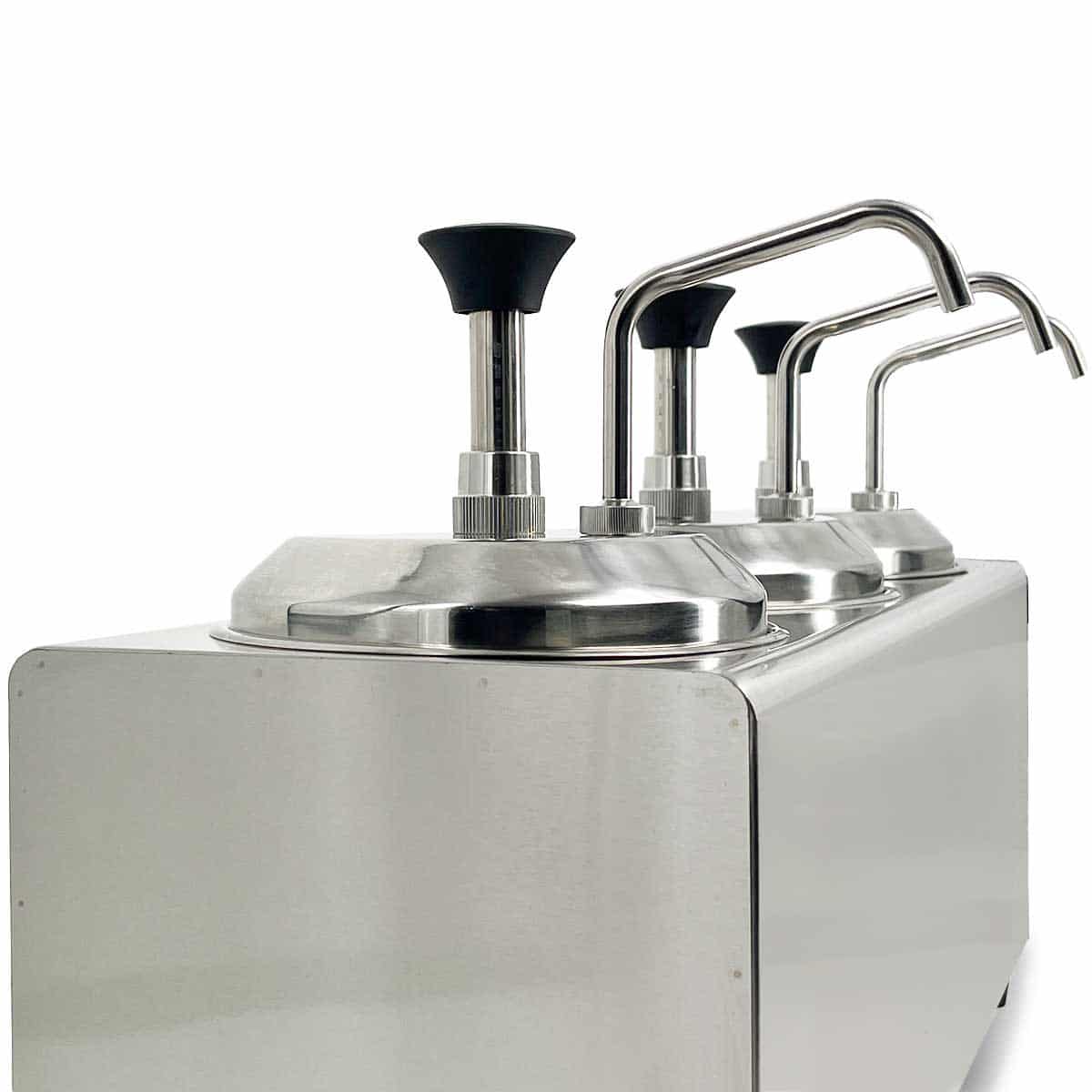 Een sauspomp is de perfecte oplossing voor het warm houden van uw sauzen. Deze sauswarmer is ontworpen met het oog op gebruiksgemak en degelijkheid, waardoor de sauspomp uitermate geschikt is voor uw professionele keuken, catering of buffet. De verwarmer beschikt over een draaiknop waarmee u de temperatuur kunt bepalen, zodat al uw sauzen op de perfecte temperatuur geserveerd kunnen worden.