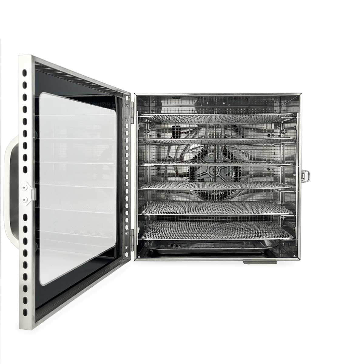 Met onze voedseldroger kunt u op een eenvoudige en efficiënte manier voedsel drogen en bewaren, waardoor de smaak en voedingsstoffen behouden blijven, terwijl de houdbaarheid wordt verlengd. Het droogproces zorgt ervoor dat overtollig vocht uit voedsel wordt verwijderd, waardoor bacteriegroei wordt geremd en bederf wordt tegengegaan. Dit betekent dat u langer kunt genieten van uw favoriete seizoensfruit, groenten, kruiden, vlees, vis en nog veel meer.