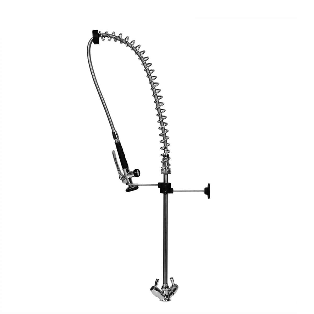 Een voorspoeldouche is onmisbaar in elke spoelkeuken, door de flexibele stang is overal goed bij te komen en met de haak weer makkelijk terug te hangen.