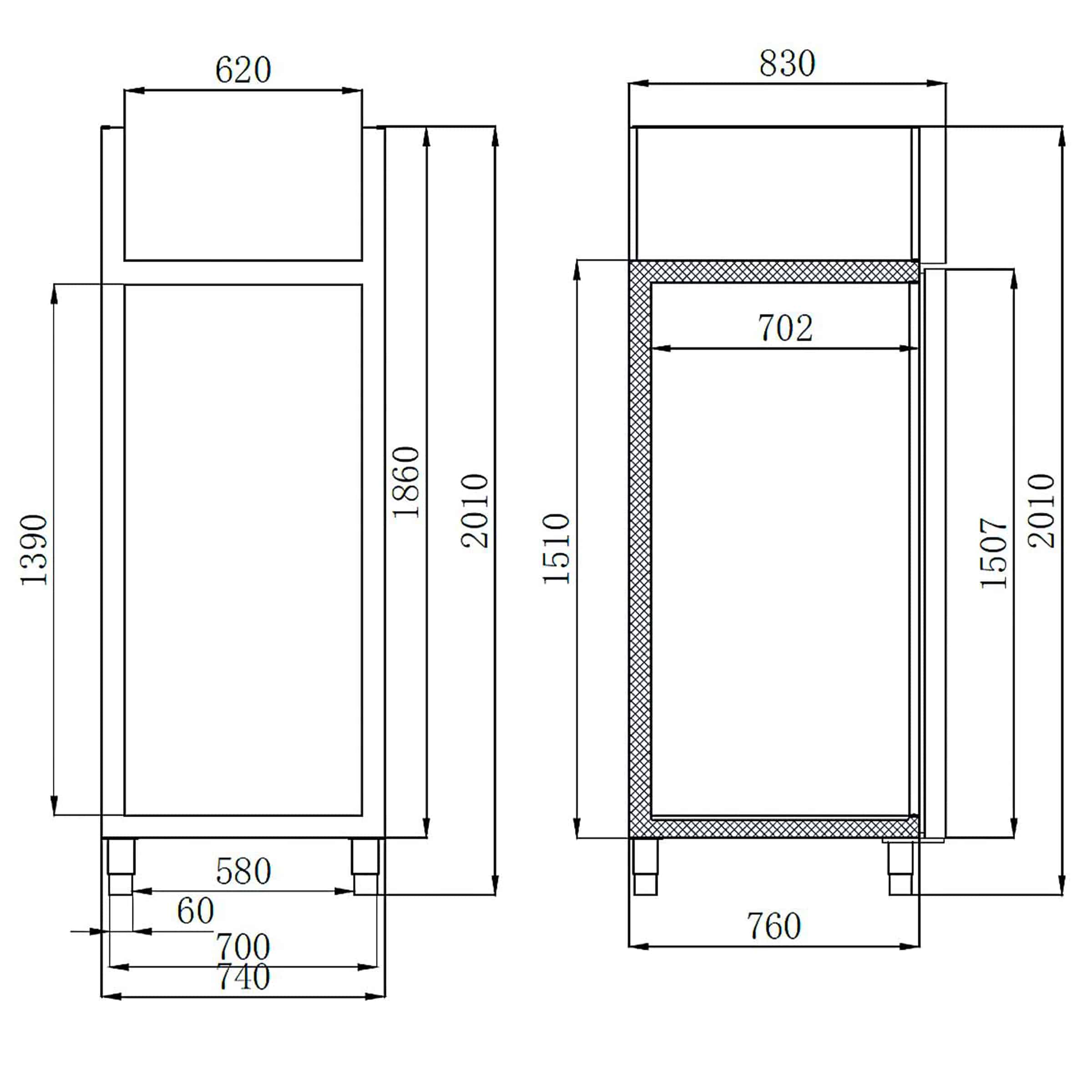 HCB Vrieskast – 650 liter – 2/1 GN – 230V – RVS