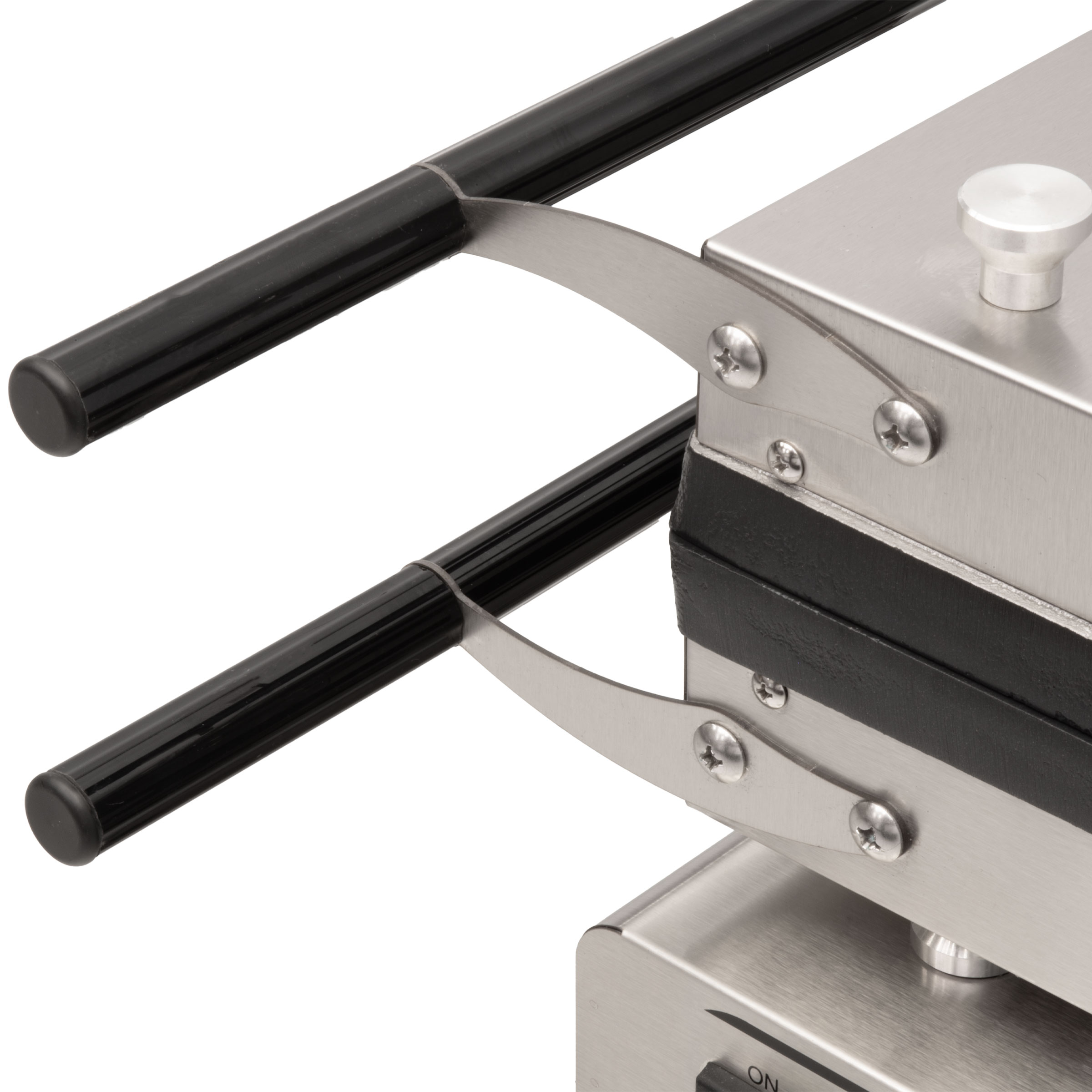Het wafelijzer is geschikt voor 2 grote wafels (105 x 170 mm) per bakronde. De geïntegreerde timer helpt je om elke batch precies even lang te bakken, zodat je zonder stress meerdere bestellingen tegelijk kunt draaien. De RVS behuizing is duurzaam, hygiënisch en eenvoudig te reinigen, perfect voor intensief dagelijks gebruik.