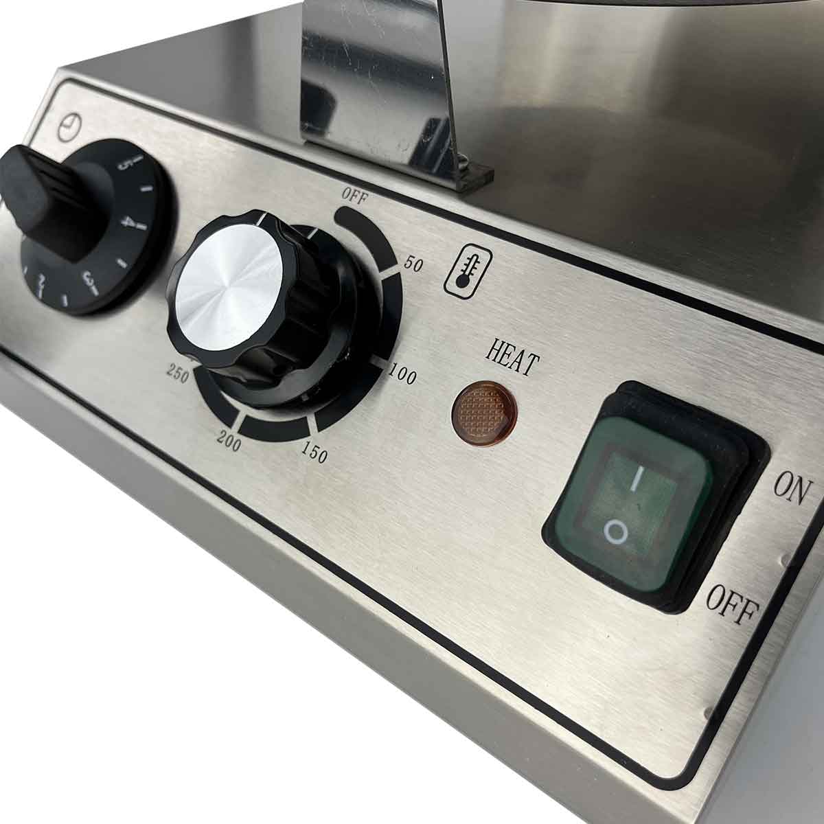 Het wafelijzer heeft een bakplaat met kleine ruitjes. Met de handige timer kunt u gemakkelijk de baktijd instellen, zodat uw wafels altijd perfect gebakken zijn. De RVS constructie zorgt ervoor dat het wafelijzer duurzaam en eenvoudig schoon te maken is.