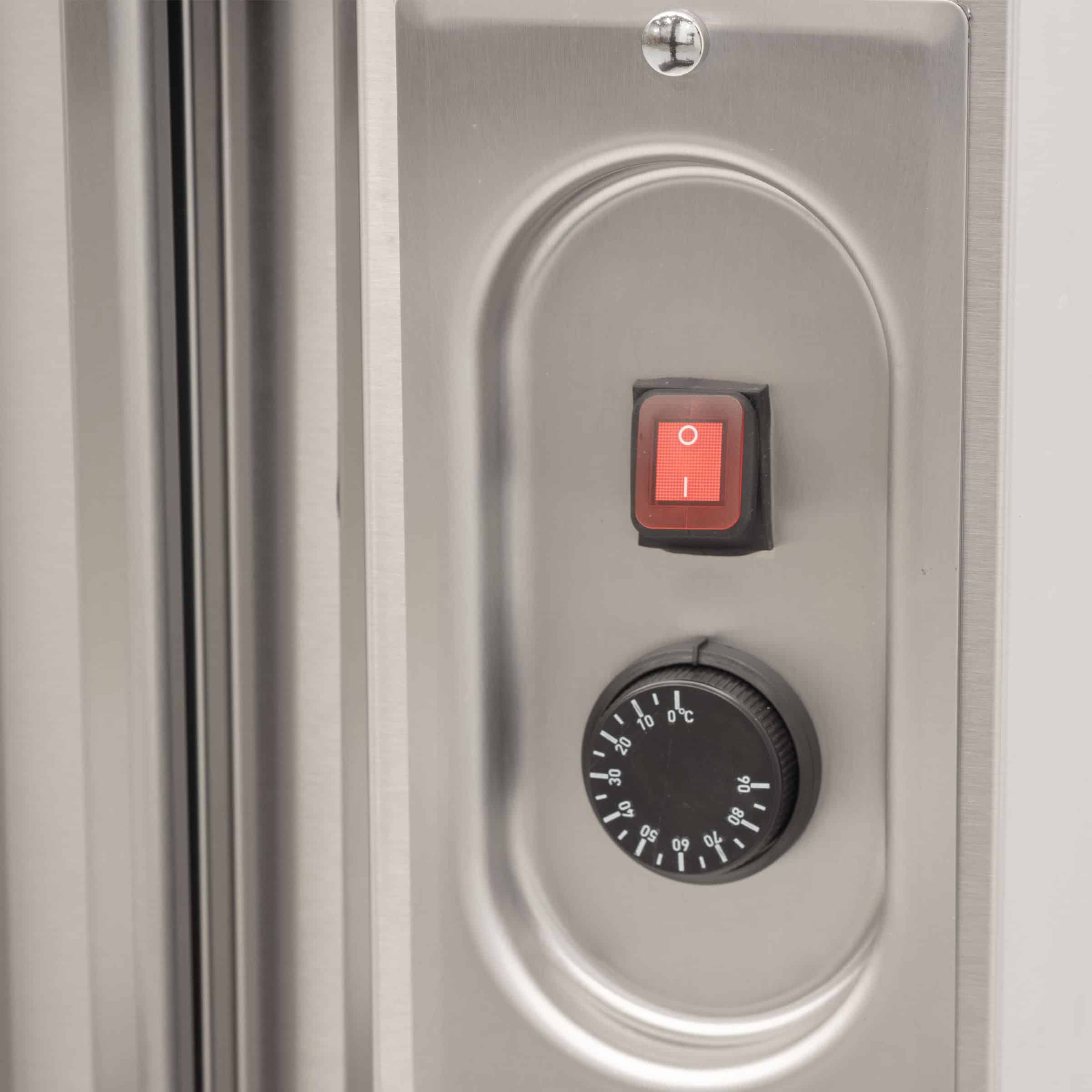 Om veilig, optimaal en efficiënt te kunnen werken in uw professionele keuken is een RVS warmhoudkast van groot belang. Voorzien van een extra sterk RVS blad, stevige poten en strak afgewerkte hoeken is deze bordenwarmer van het merk HCB daarom de perfecte keuze! De warmhoudkast is uiterst geschikt voor het opwarmen en warm houden van uw borden. Verder is de kast door zijn stevigheid en draagkracht ook geschikt om keukenapparatuur op te plaatsen.