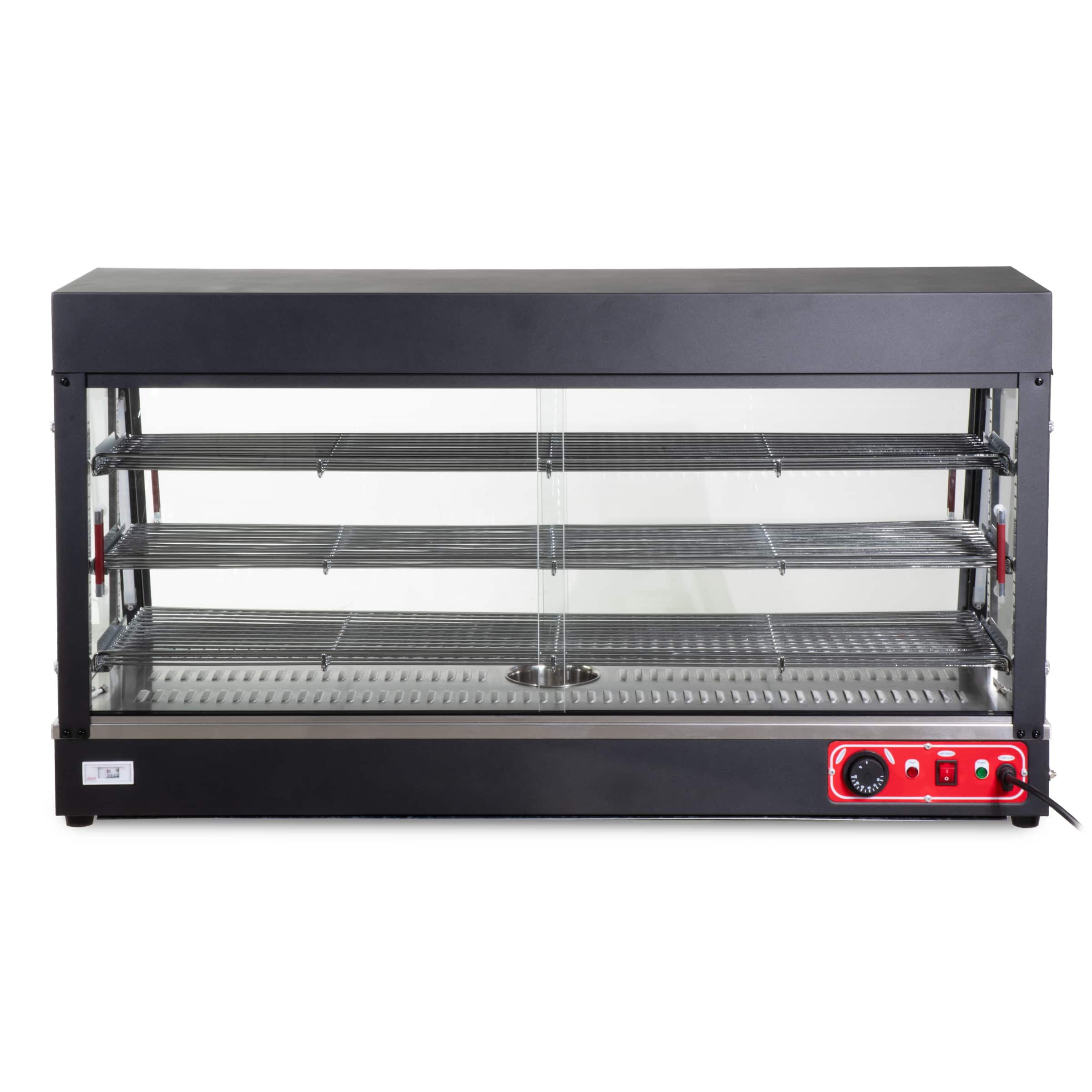 Onze warmhoudvitrine is voorzien van hoogwaardige materialen en is zorgvuldig ontworpen om de beste temperatuur te behouden. De vitrine is uitgerust met een krachtig verwarmingssysteem dat zorgt voor een gelijkmatige verdeling van de warmte, waardoor voedsel op de juiste temperatuur blijft zonder uitdroging of oververhitting.