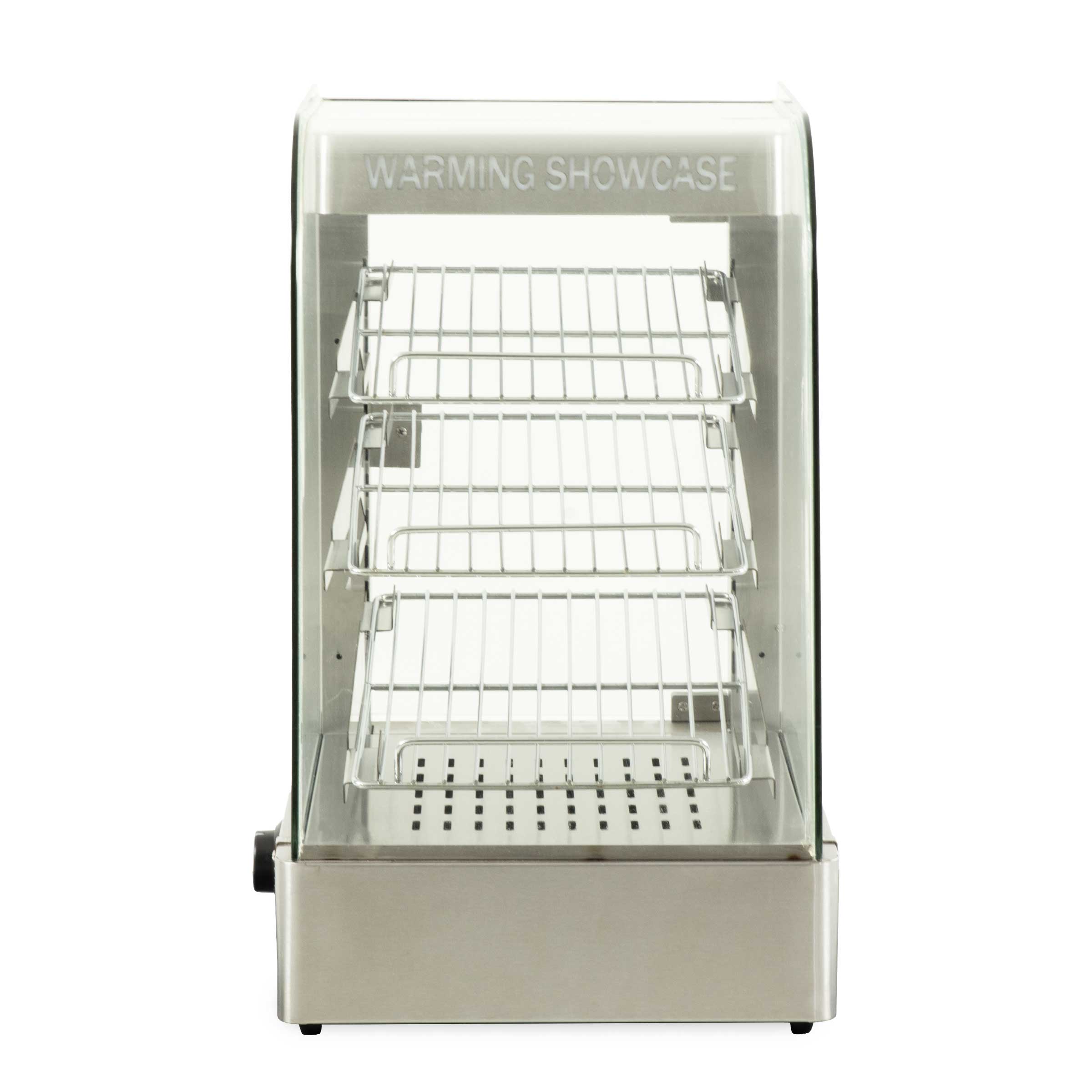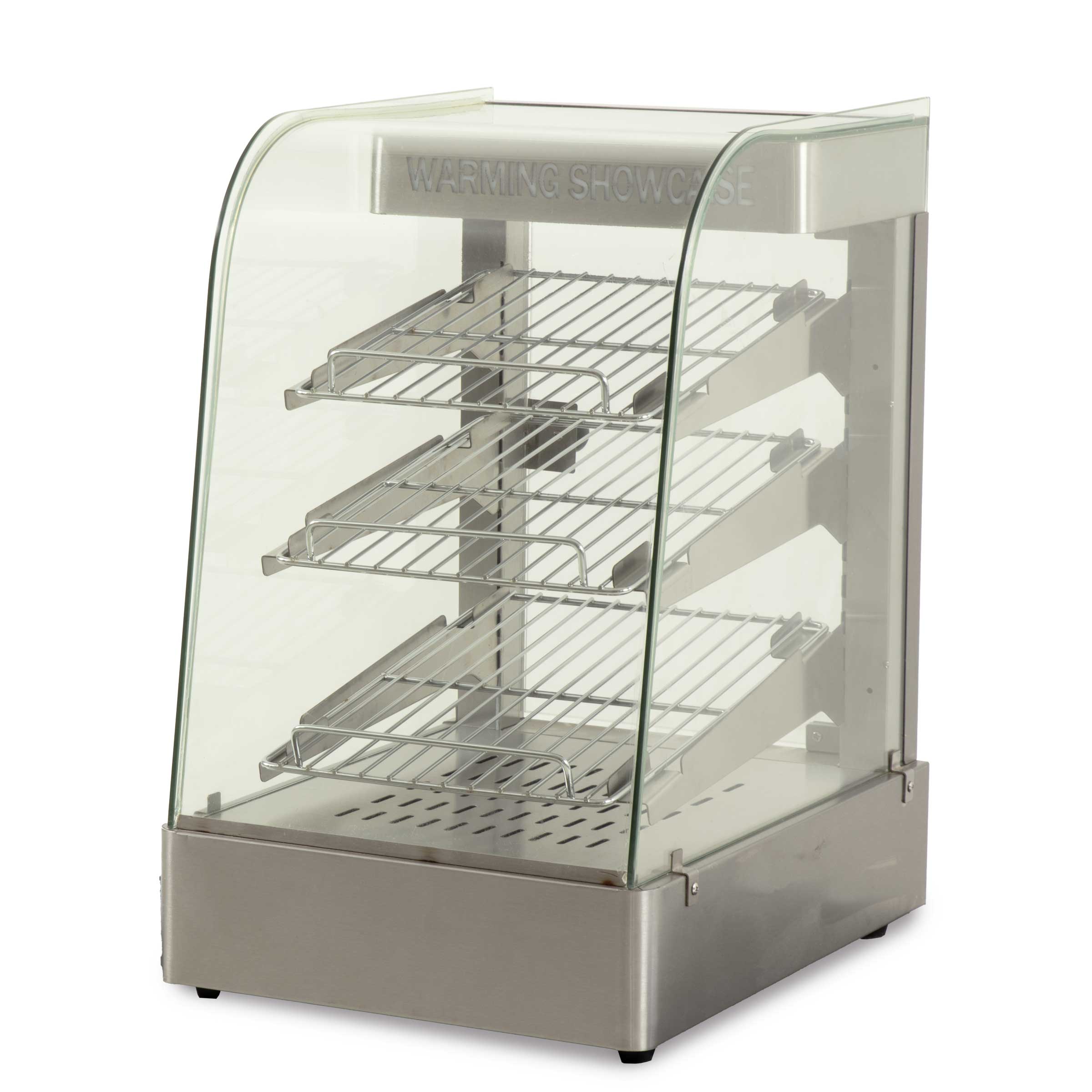 Met zijn ruime capaciteit biedt warmhoudvitrine voldoende ruimte en is te gebruiken voor verschillende gerechten, zoals broodjes, gebak, quiches, warme snacks en nog veel meer. De doorzichtige zijpanelen zorgen voor een uitstekende zichtbaarheid van het voedsel, waardoor klanten verleid worden en het gerecht gemakkelijk kunnen kiezen.