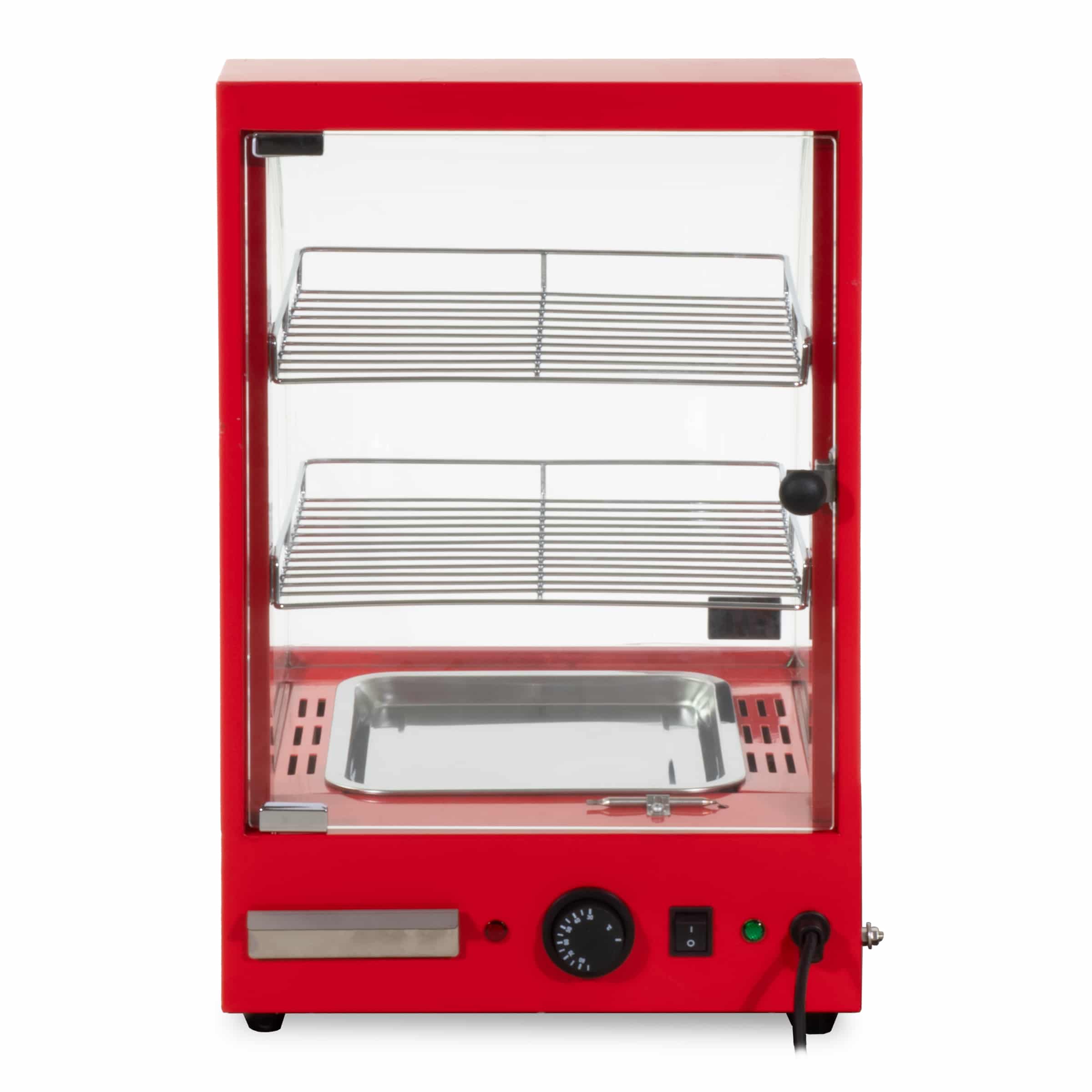 Met zijn ruime capaciteit biedt warmhoudvitrine voldoende ruimte en is te gebruiken voor verschillende gerechten, zoals broodjes, gebak, quiches, warme snacks en nog veel meer. De doorzichtige zijpanelen zorgen voor een uitstekende zichtbaarheid van het voedsel, waardoor klanten verleid worden en het gerecht gemakkelijk kunnen kiezen.