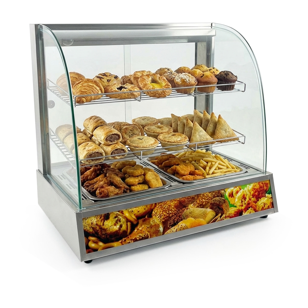 Een warmhoudvitrine is een ideaal apparaat voor elke horecaonderneming die hun gerechten warm en vers willen presenteren tot ze worden geserveerd. De vitrine is voorzien van RVS rekken om uw producten op te kunnen presenteren. Het interieur is gemaakt van hoogwaardig RVS en is daarom duurzaam, makkelijk schoon te maken en heeft een mooie uitstraling.