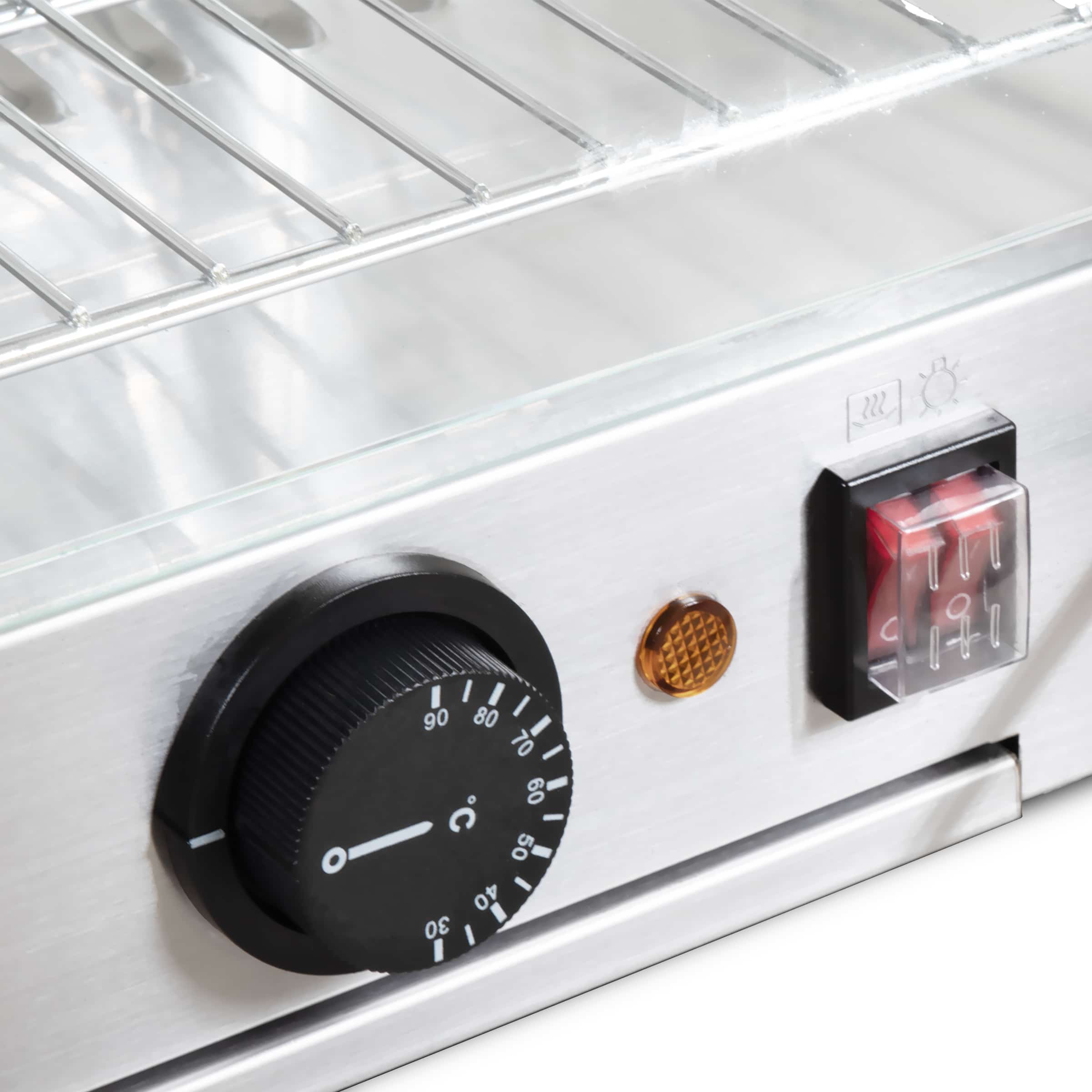 De bediening van de warmhoudvitrine is eenvoudig en intuïtief. De gewenste temperatuur is nauwkeurig in te stellen en controleren. De ingebouwde verlichting zorgt ervoor dat het voedsel er aantrekkelijk uitziet en de klanten direct aanspreekt.