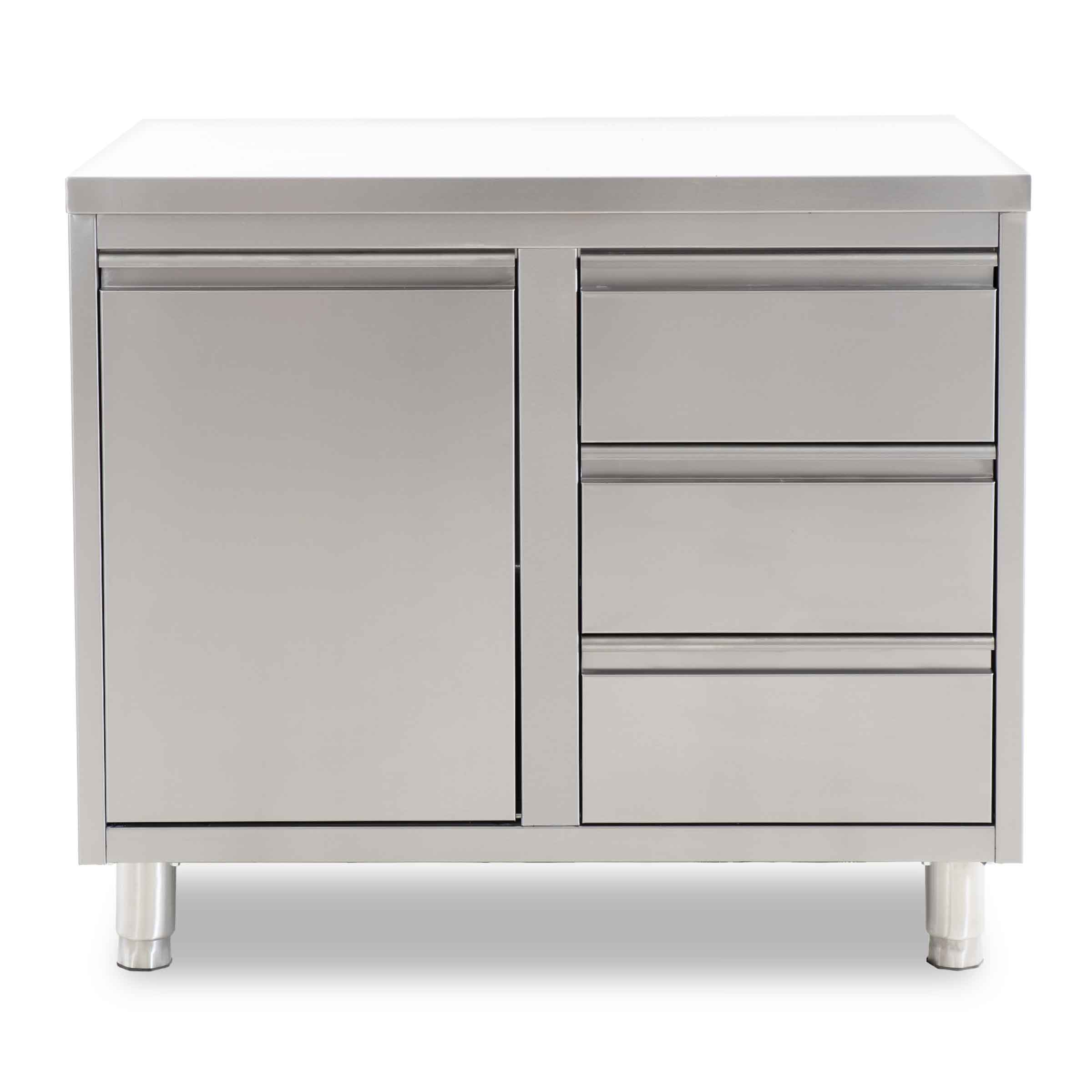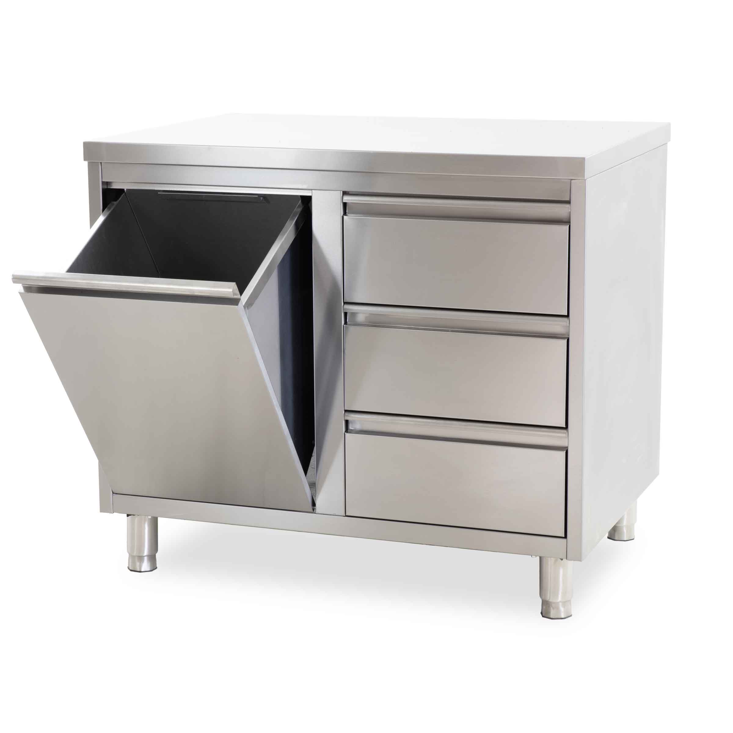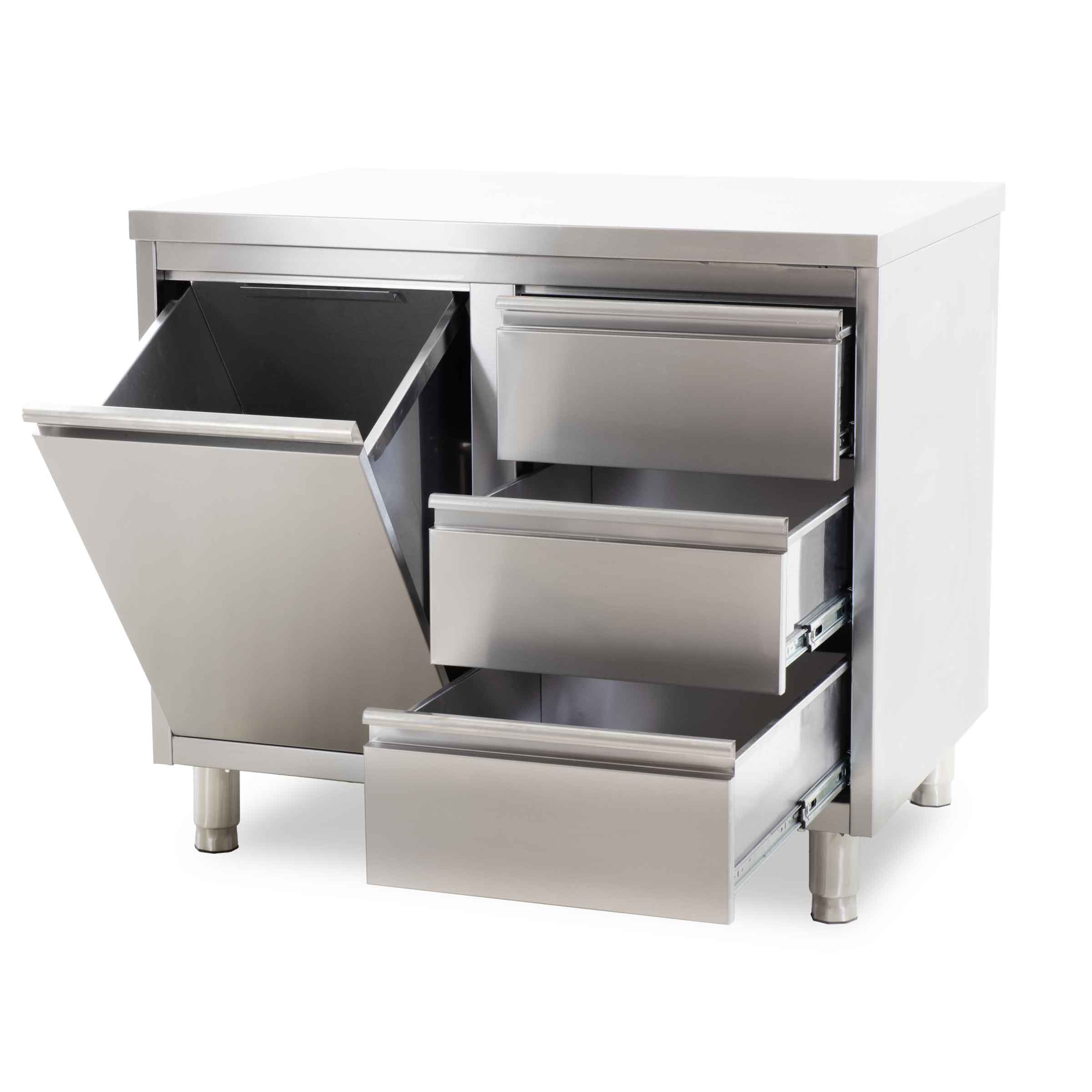 HCB Werkkast – 3 lades – afvalbak – 100 cm – RVS