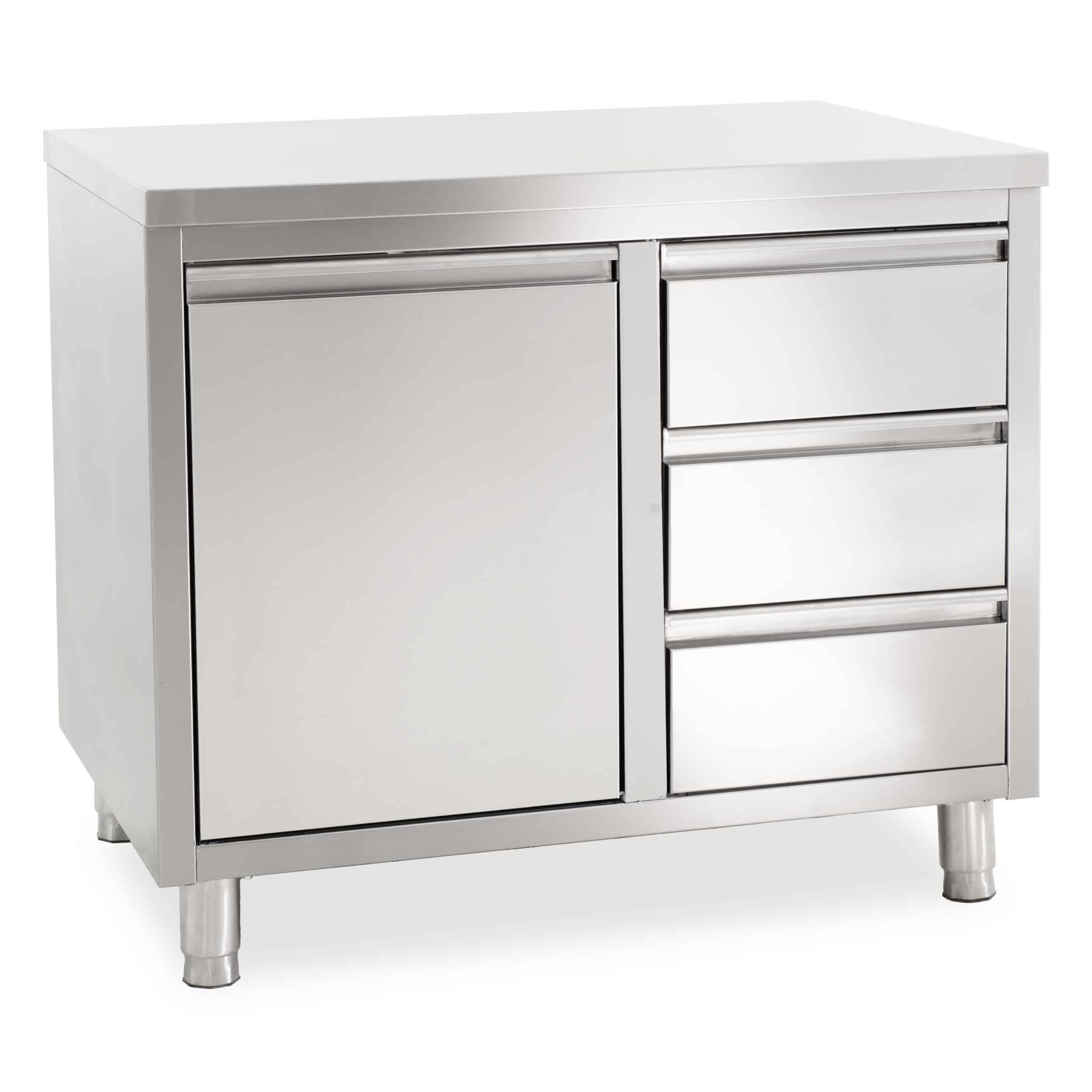 Om veilig, optimaal en efficiënt te kunnen werken in uw professionele keuken zijn RVS Werkkasten van groot belang. Voorzien van een extra sterk RVS blad, stevige poten en strak afgewerkte hoeken is deze werkkast van het merk HCB daarom de perfecte keuze! Deze werkkast heeft met de netjes af te sluiten prullenbak en uitschuifbare lades voor overzichtelijke opbergruimte. Verder is de kast door zijn stevigheid en draagkracht zeer geschikt om in de professionele keuken te gebruiken.