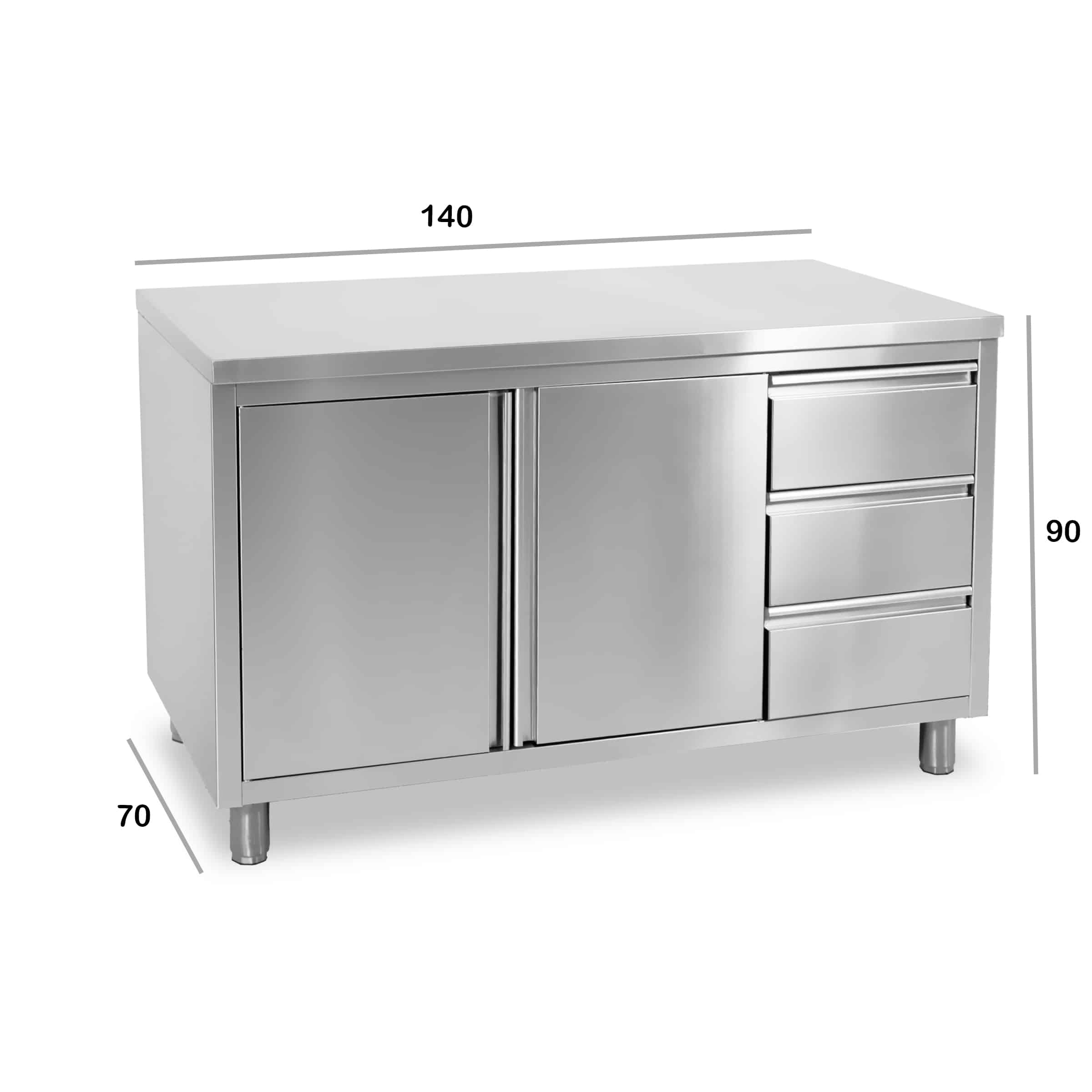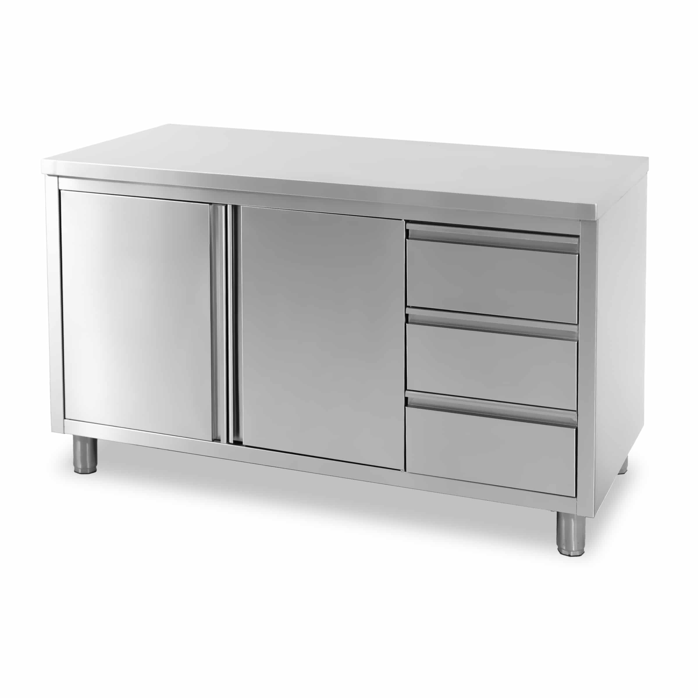 HCB Werkkast – klapdeur – 3 lades – 140 cm – RVS