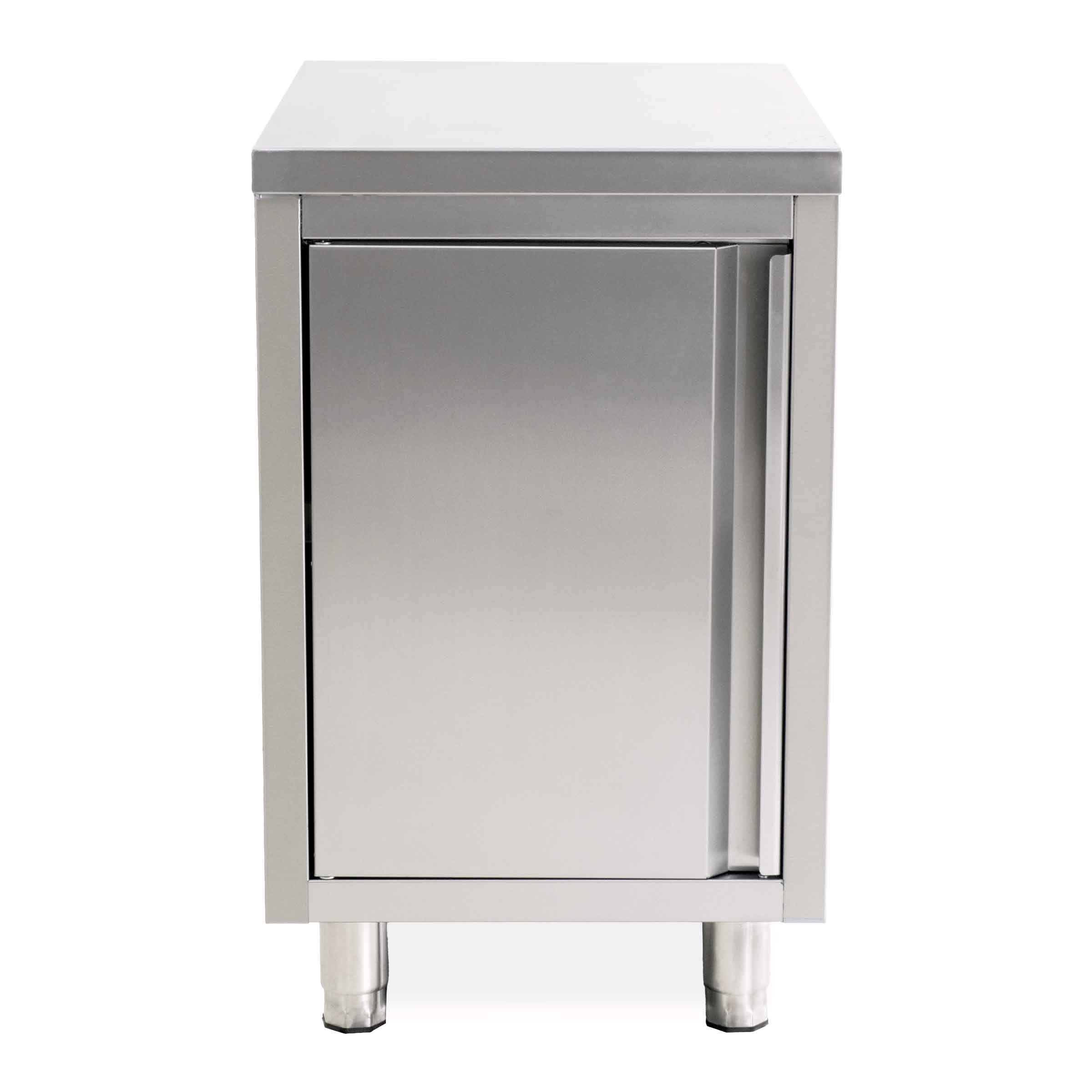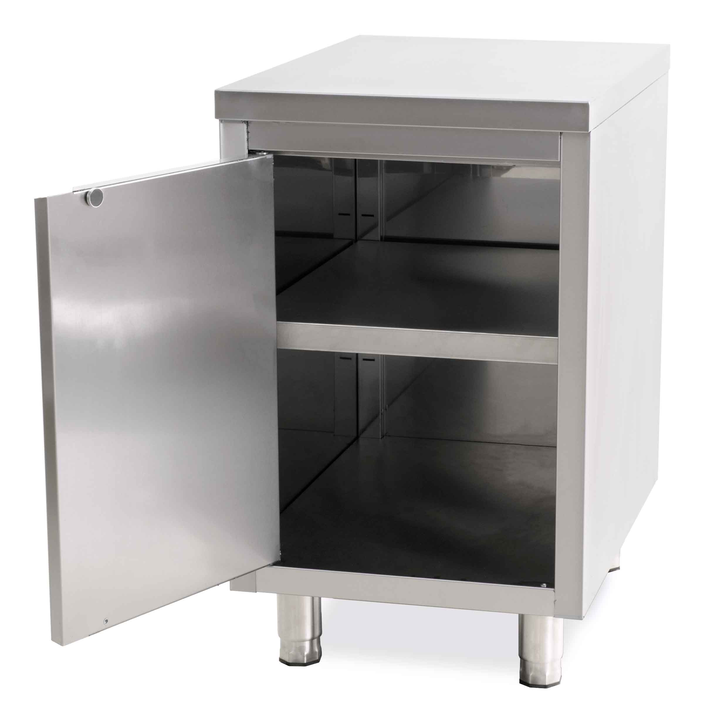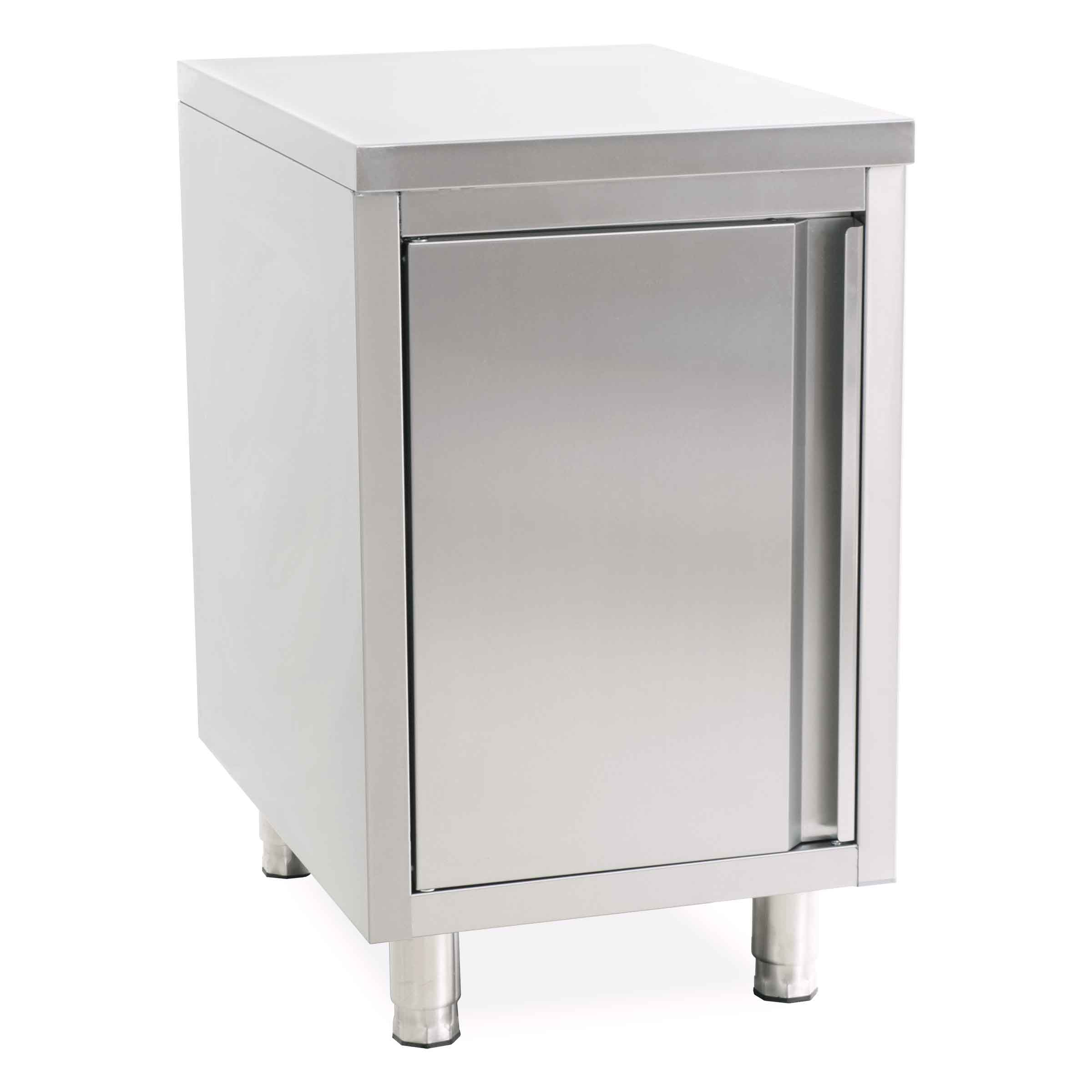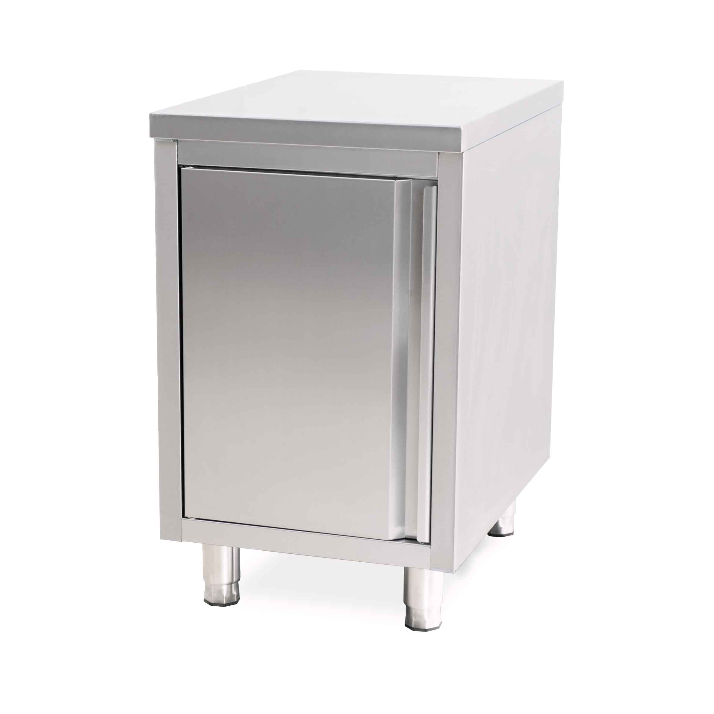 Om veilig, optimaal en efficiënt te kunnen werken in uw professionele keuken zijn RVS Werkkasten van groot belang. Voorzien van een extra sterk RVS blad, stevige poten en strak afgewerkte hoeken is deze werkkast van het merk HCB daarom de perfecte keuze! Deze werkkast heeft met de netjes af te sluiten klapdeur en een schap voor overzichtelijke opbergruimte. Verder is de kast door zijn stevigheid en draagkracht zeer geschikt om in de professionele keuken te gebruiken.