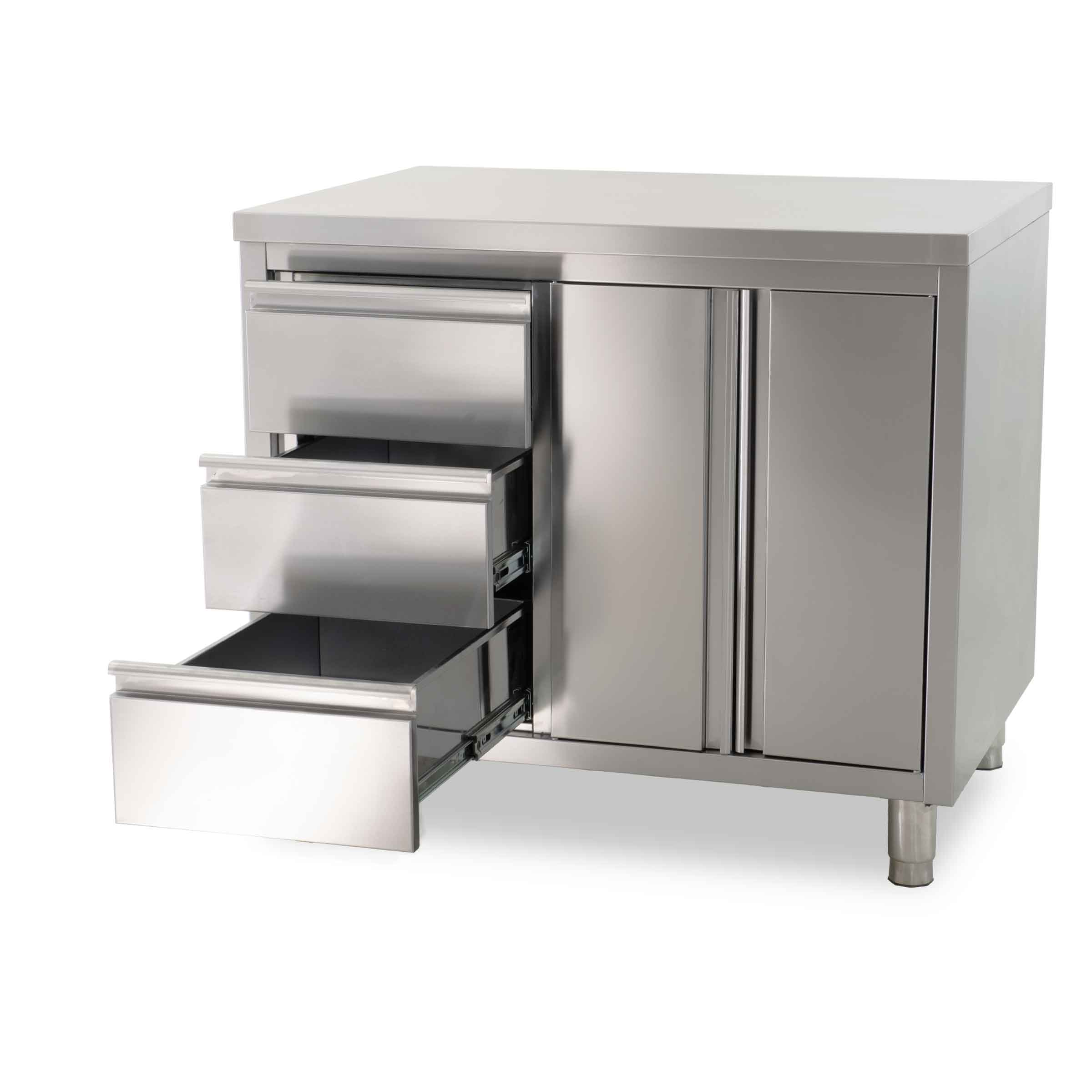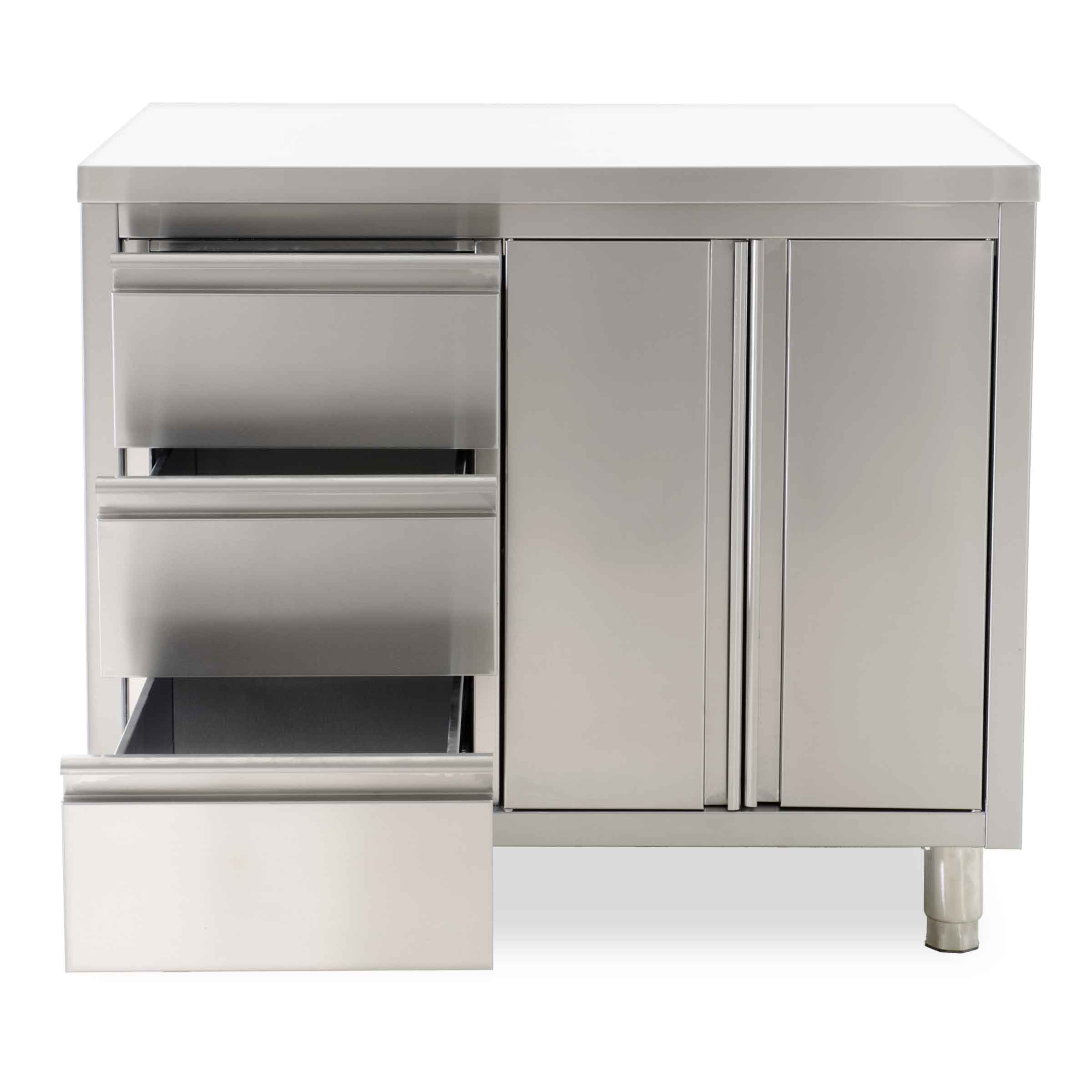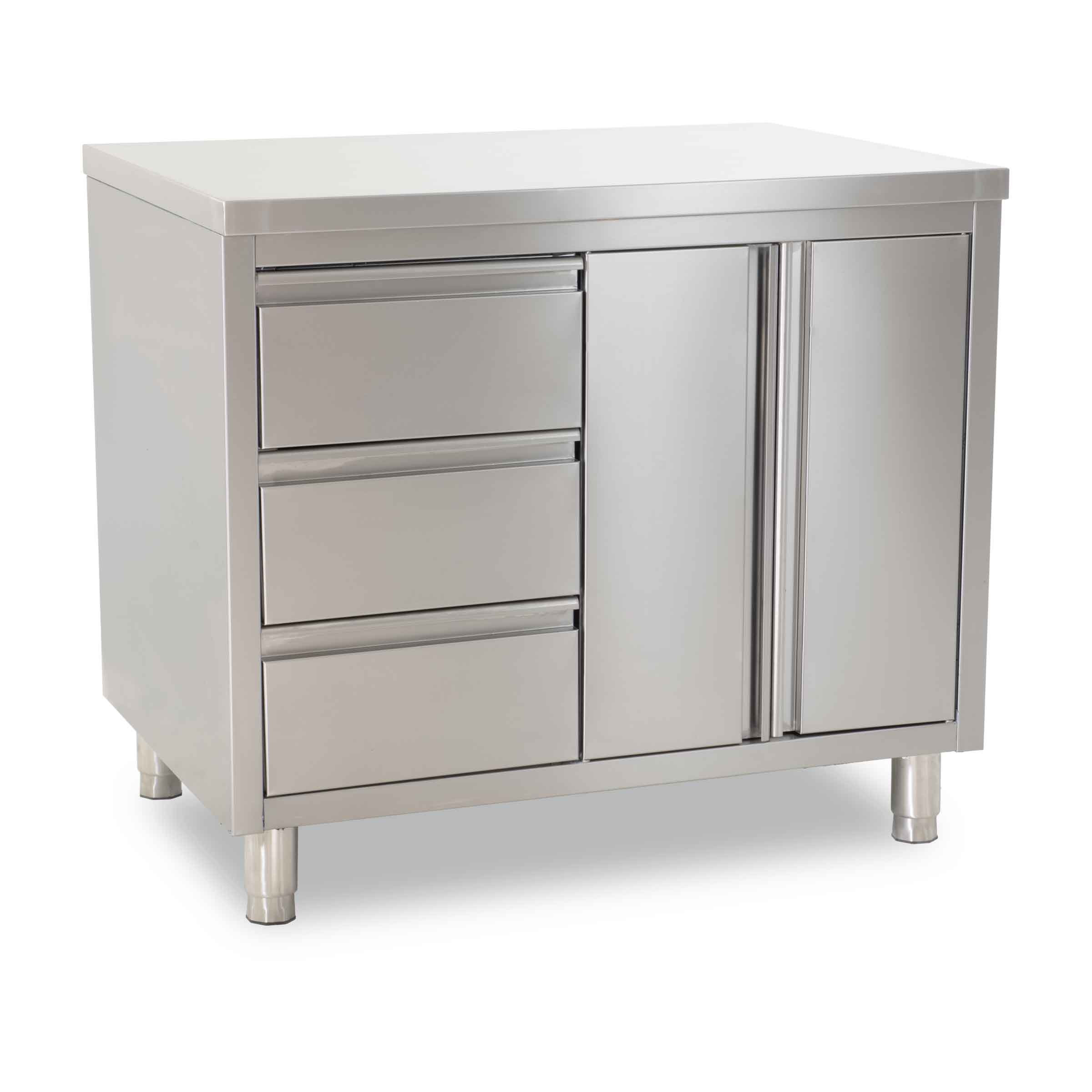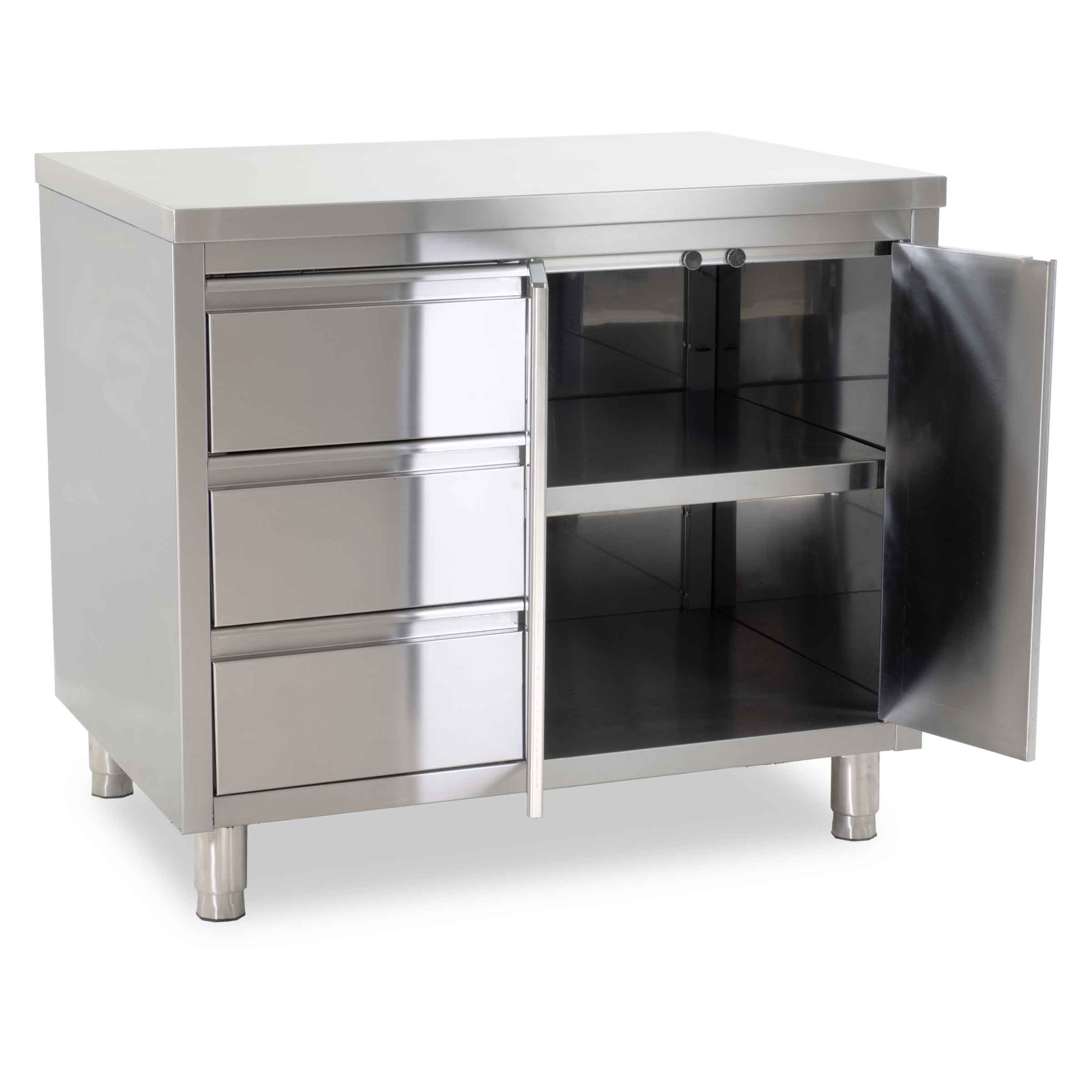 HCB Werkkast – klapdeuren – 3 lades – 100 cm – RVS