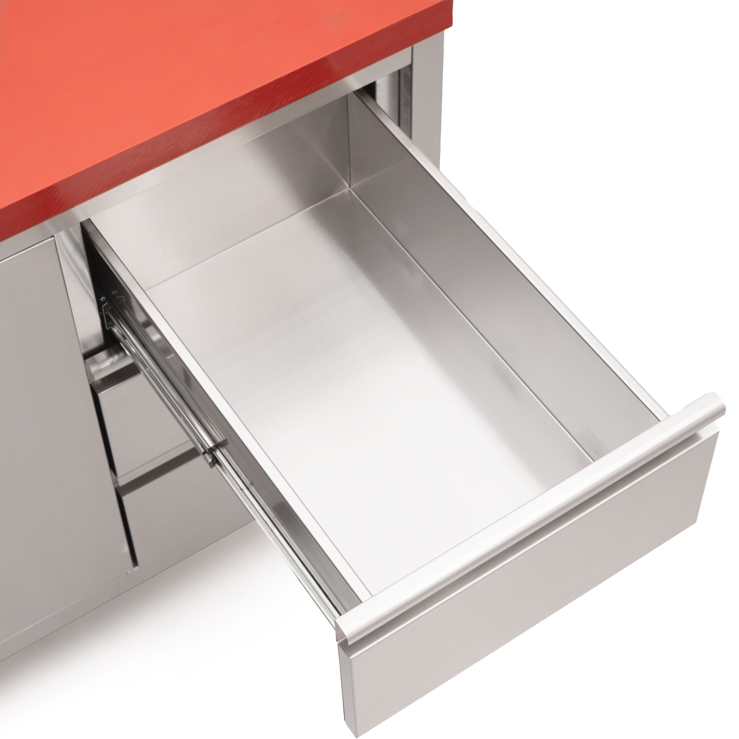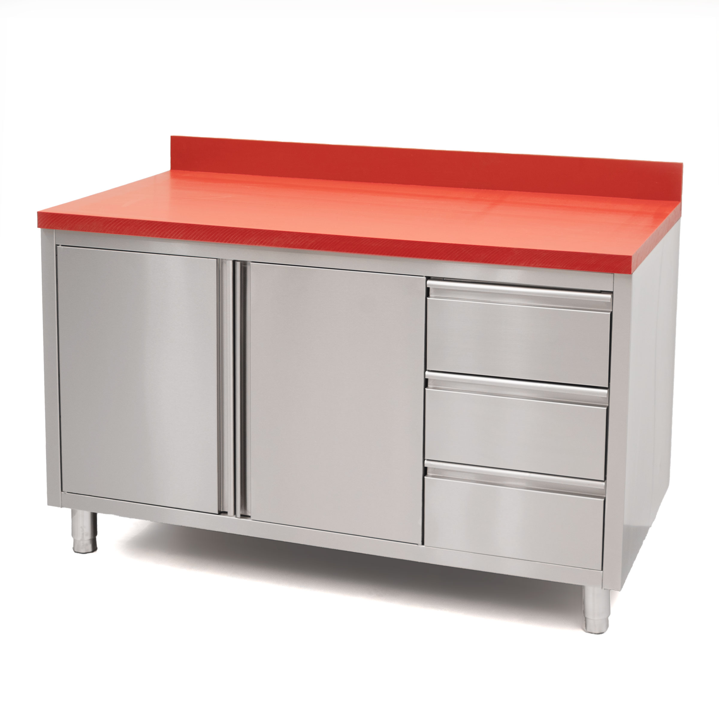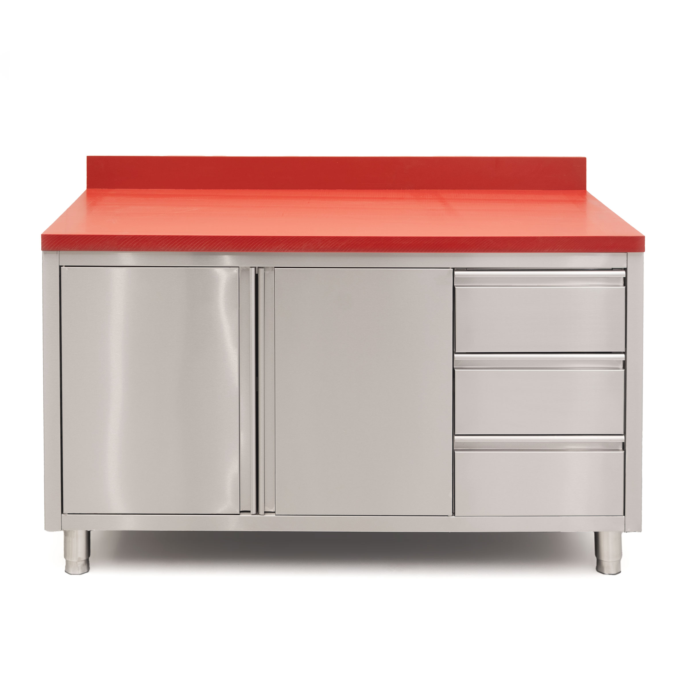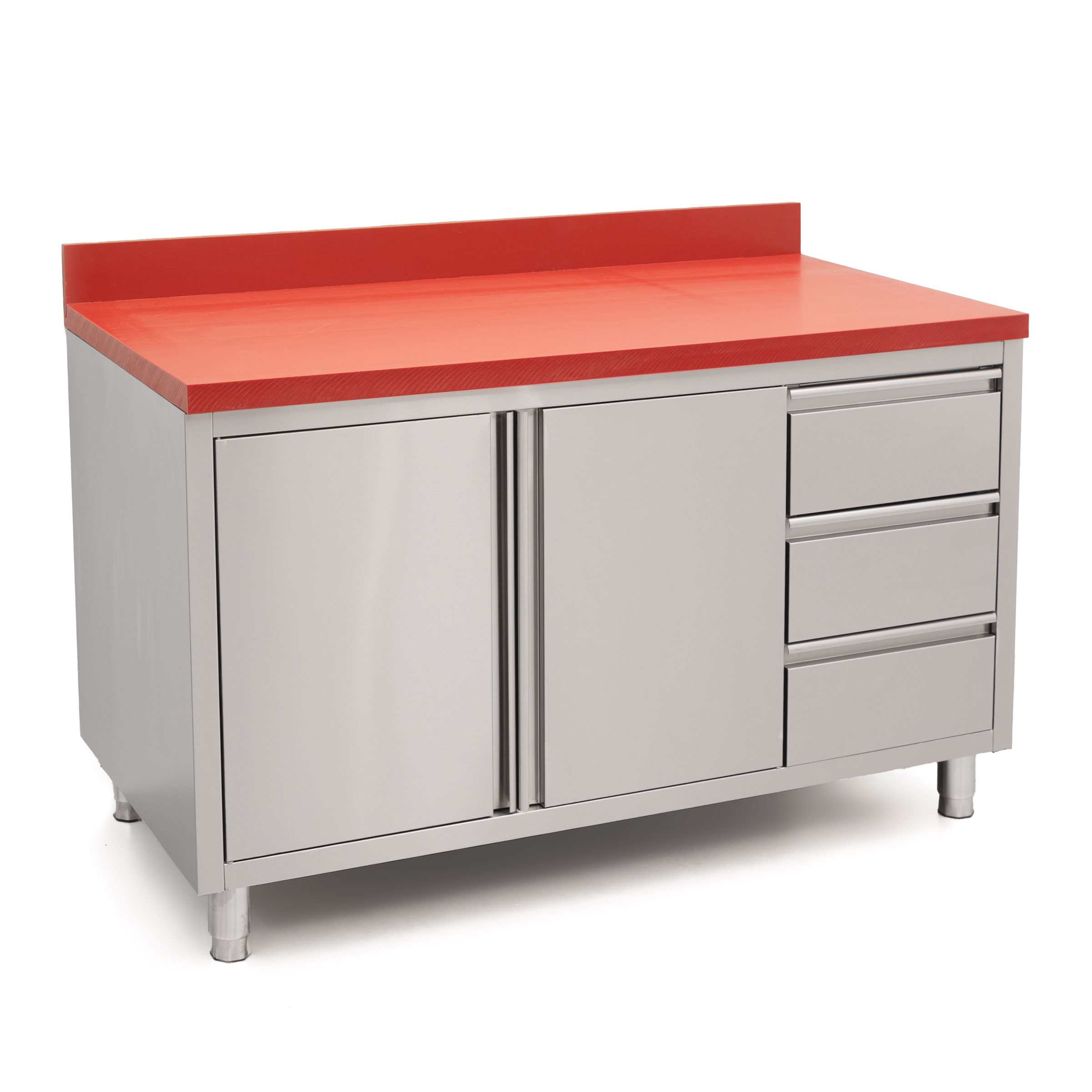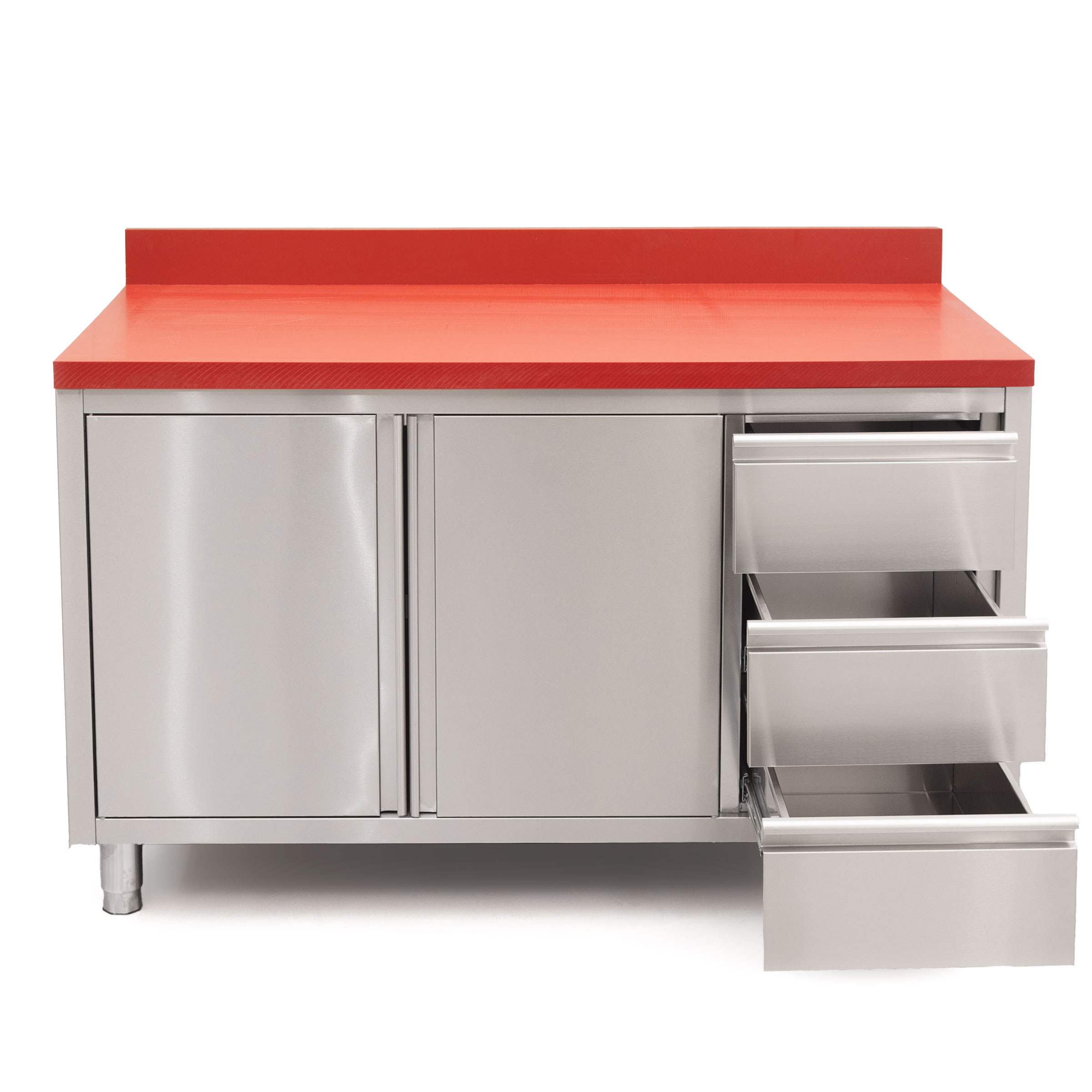 HCB Werkkast – snijtafel – klapdeuren – lades – 140 cm – RVS – Polyethylene