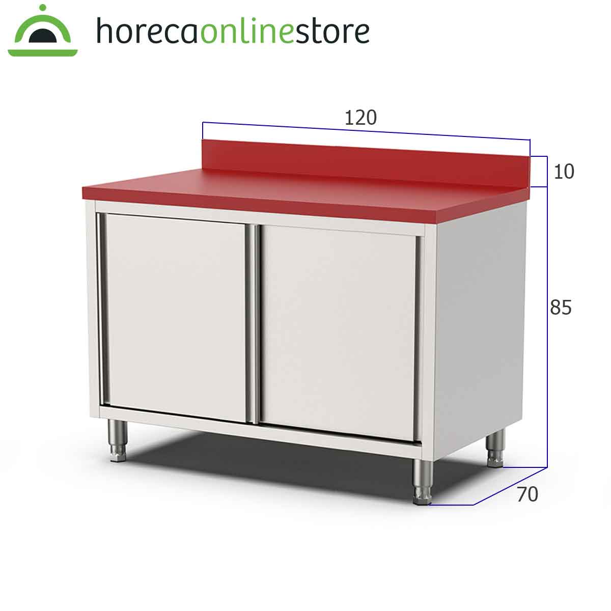 HCB Werkkast – snijtafel – schuifdeuren – 120 cm – RVS – Polyethylene