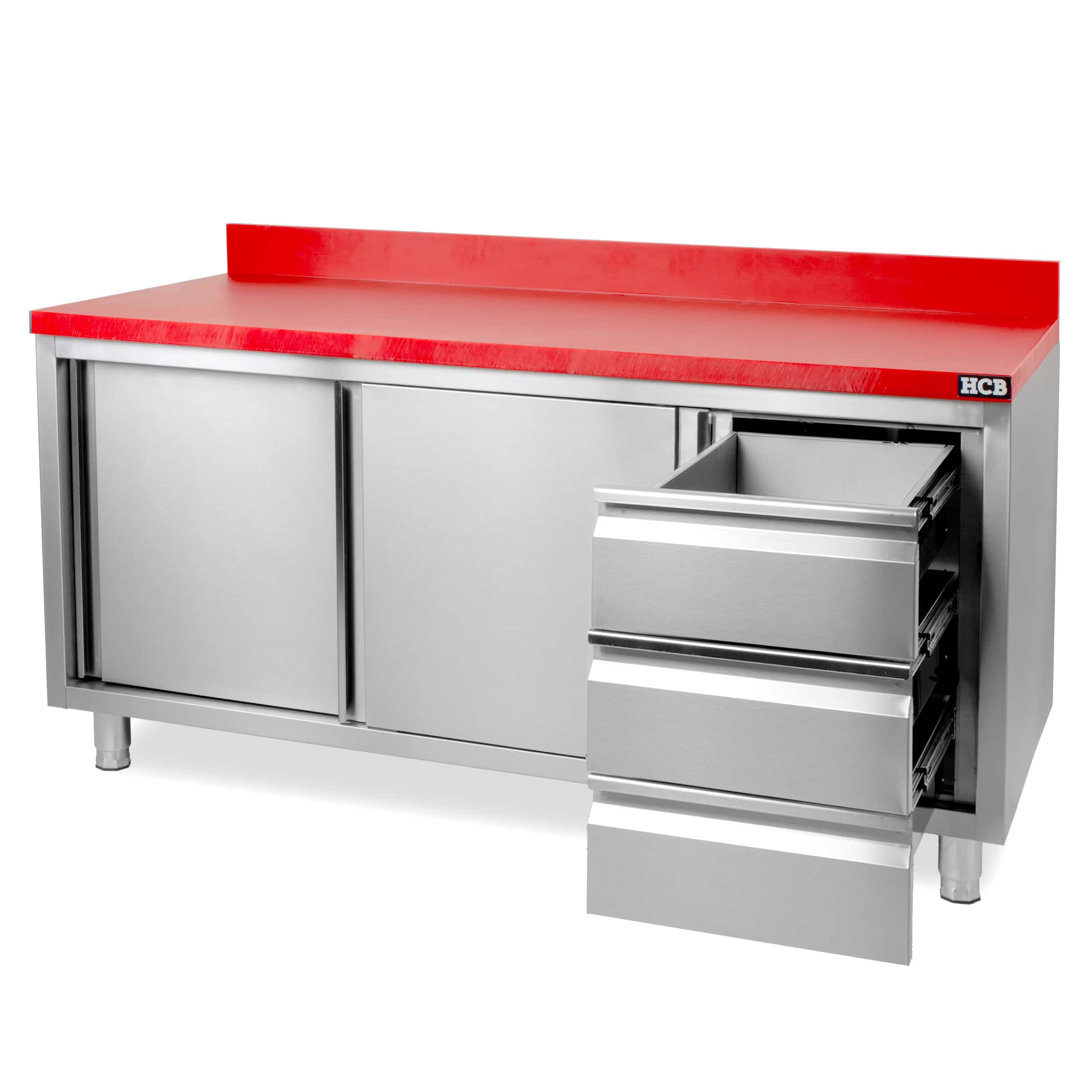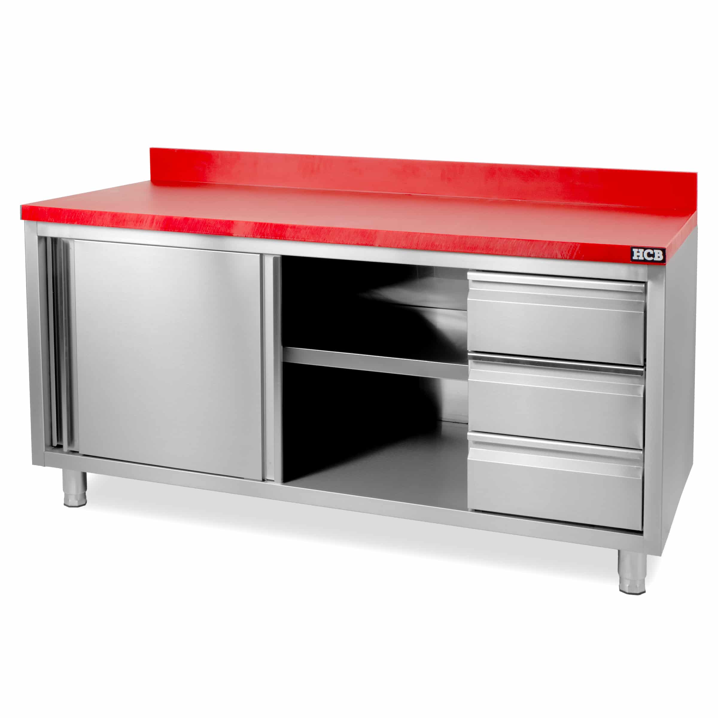 HCB Werkkast – snijtafel – schuifdeuren – lades – 160 cm – RVS – Polyethylene