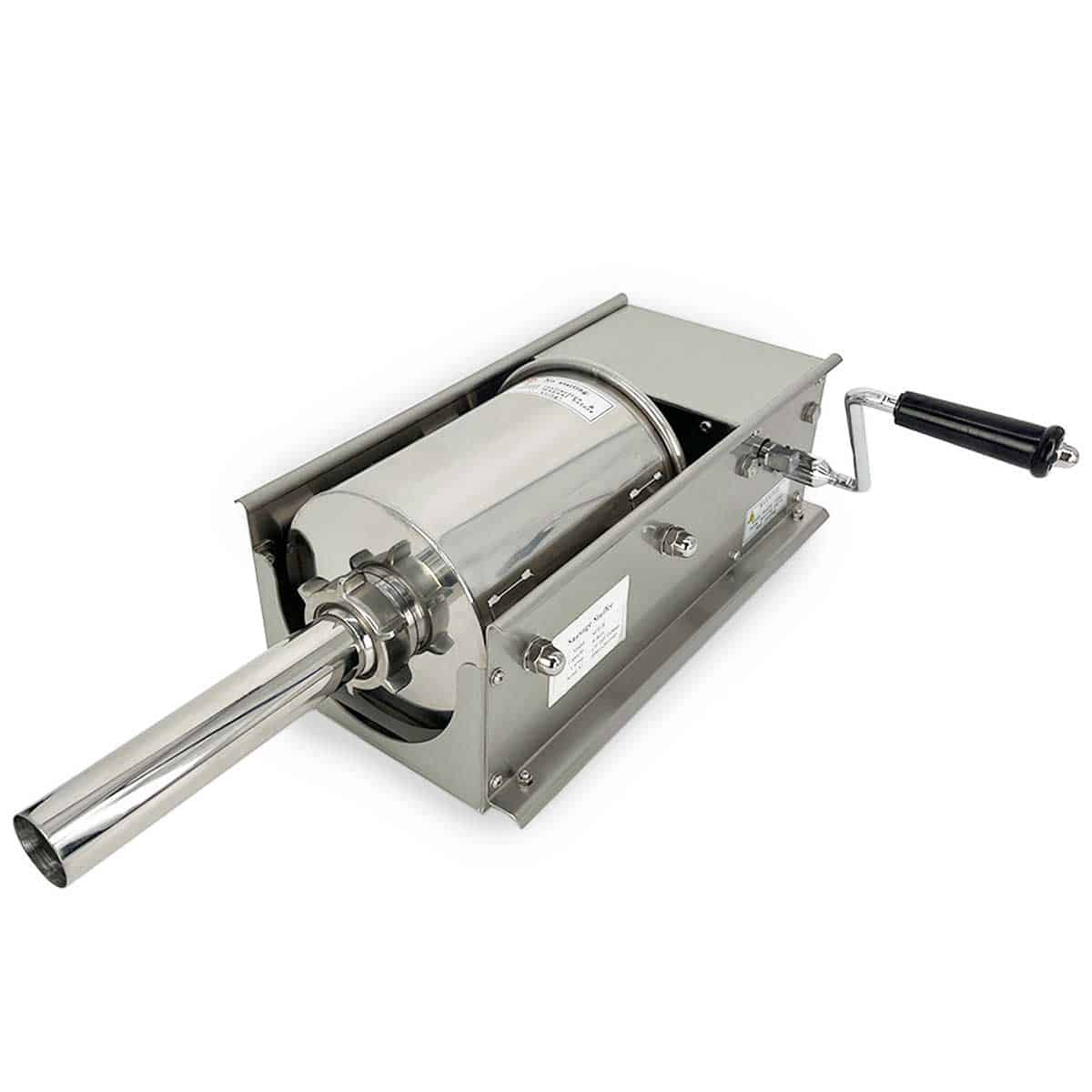 Het apparaat is ontworpen met het oog op comfort en functionaliteit. De horizontale vorm maakt het vullen van worsten eenvoudiger en voorkomt dat het vlees in de vulbuis vast komt te zitten. Het is ook gemakkelijk te reinigen dankzij de afneembare onderdelen.