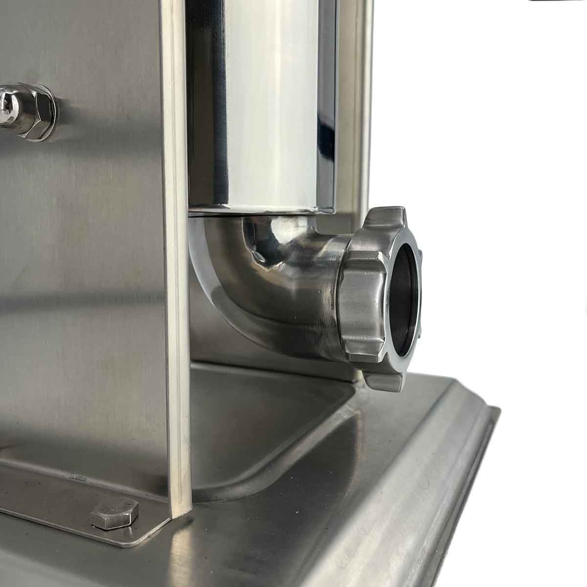 Het apparaat is ontworpen met het oog op comfort en functionaliteit. De verticale vorm maakt het vullen van worsten eenvoudiger en voorkomt dat het vlees in de vulbuis vast komt te zitten. Het is ook gemakkelijk te reinigen dankzij de afneembare onderdelen.