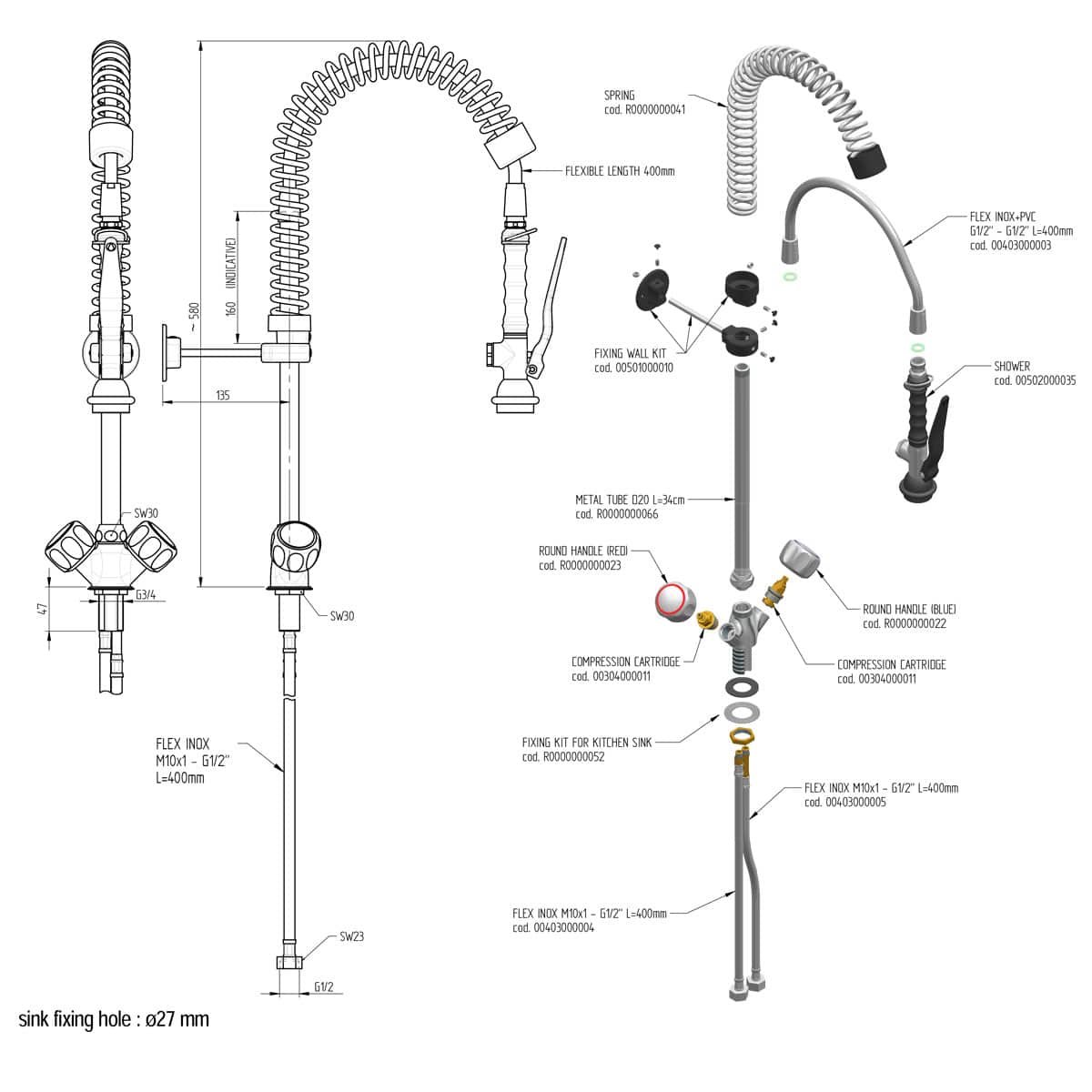 De Monolith Voorspoeldouche tilt de prestaties van jouw keuken naar een hoger niveau met zijn geavanceerde technologie en doordachte ontwerp. Of je nu een druk restaurant, een professionele keuken of een voedselverwerkingsbedrijf runt, deze voorspoeldouche is een onmisbaar instrument om aan de strenge hygiënenormen te voldoen.